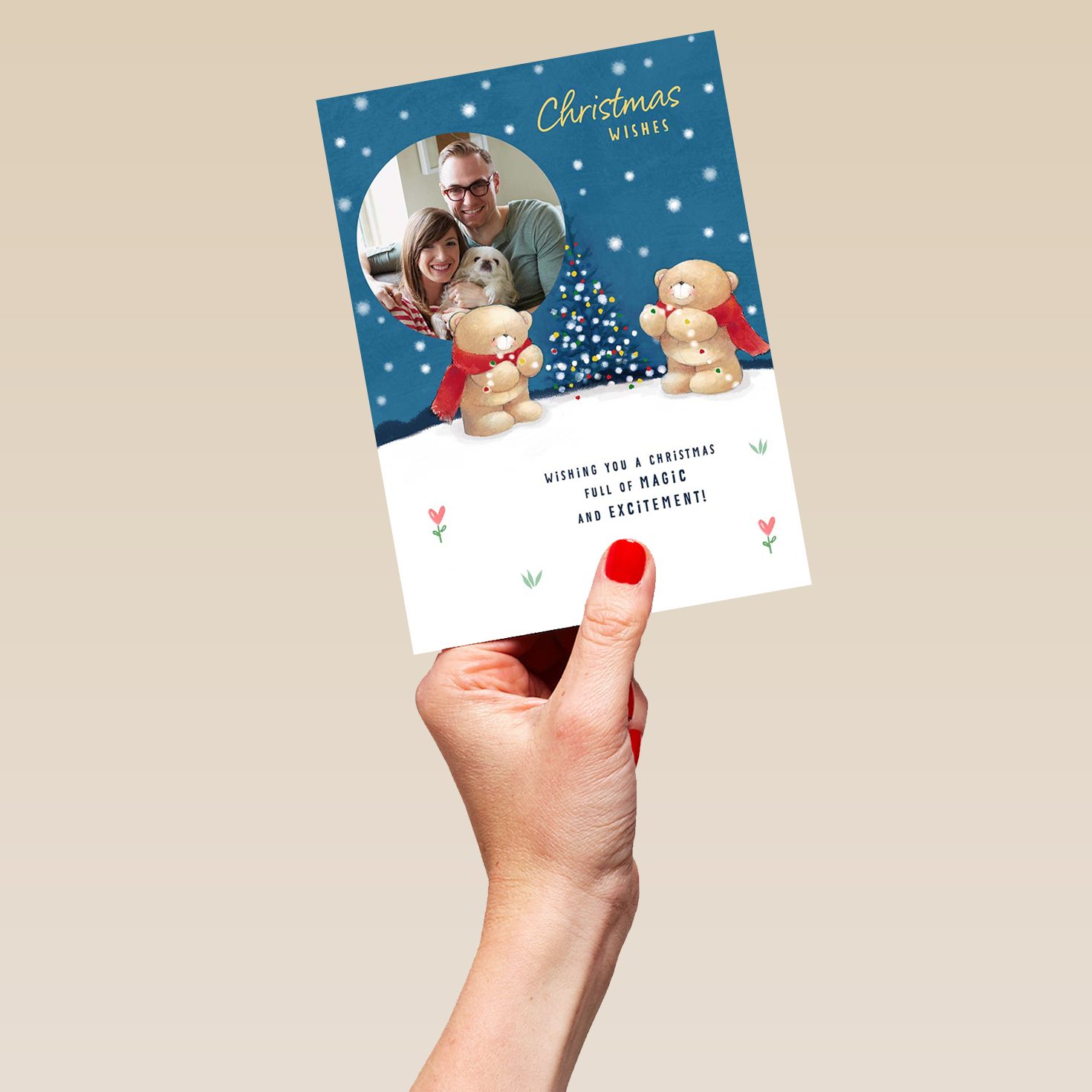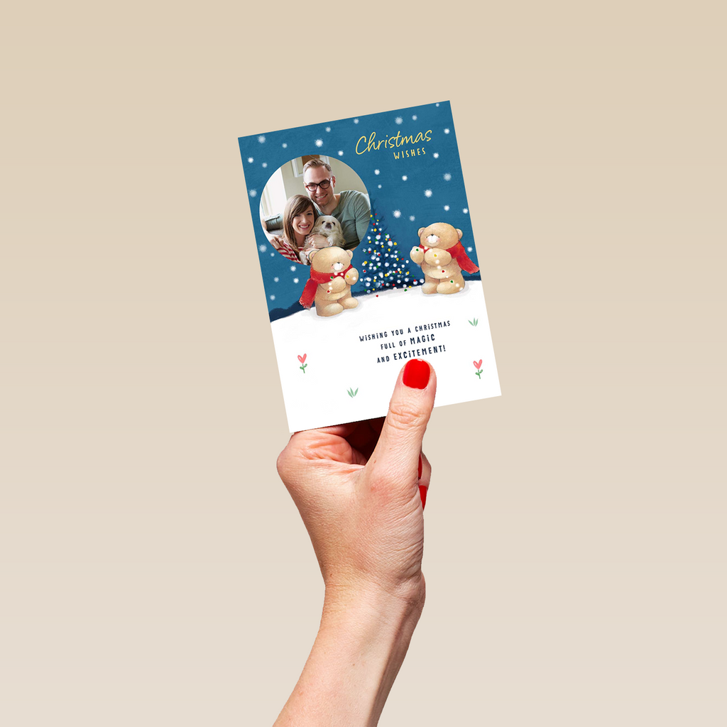 Show them you care with a personalised Forever Friends photo Christmas card from Hallmark. Our Christmas cards are printed on premium quality, FSC®-certified card & delivered nationwide. This card is available as standard 12cm by 16.7cm and large 15.5cm by 21.6cm.
