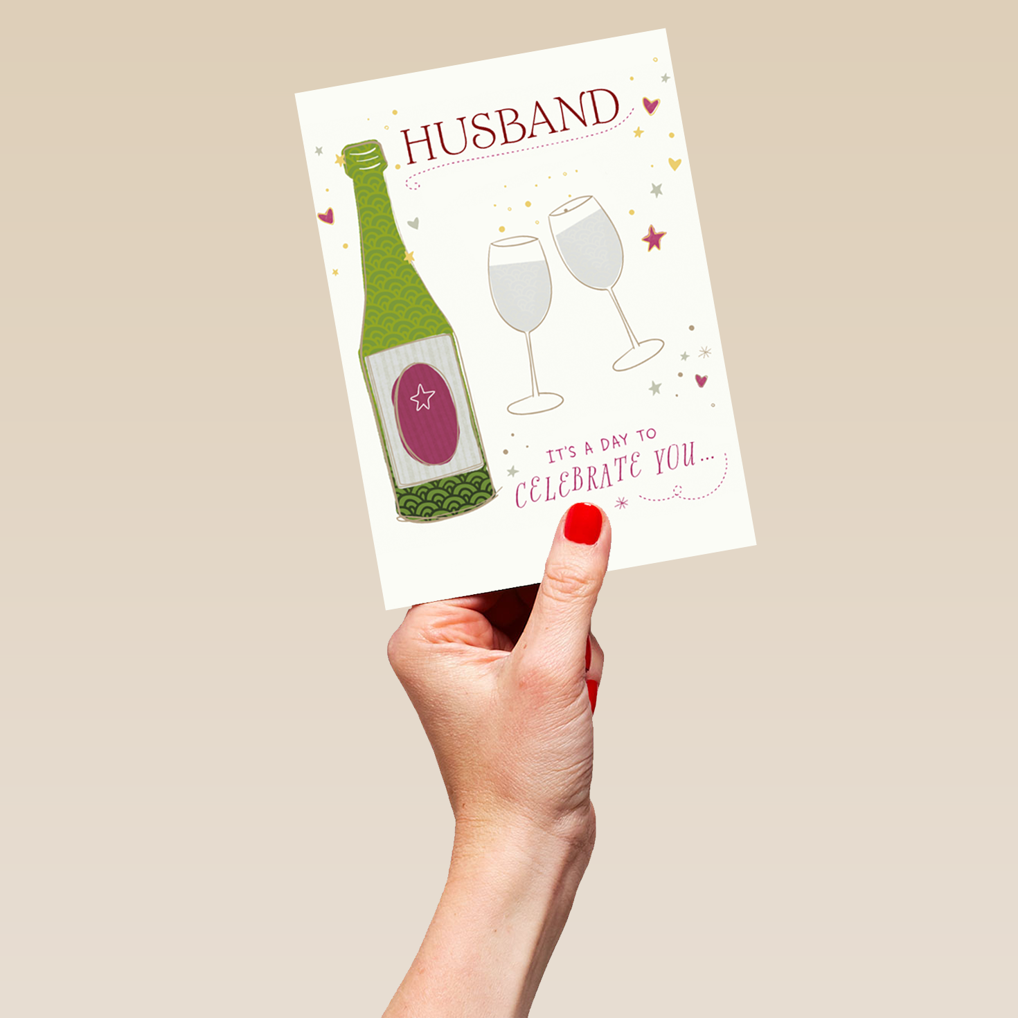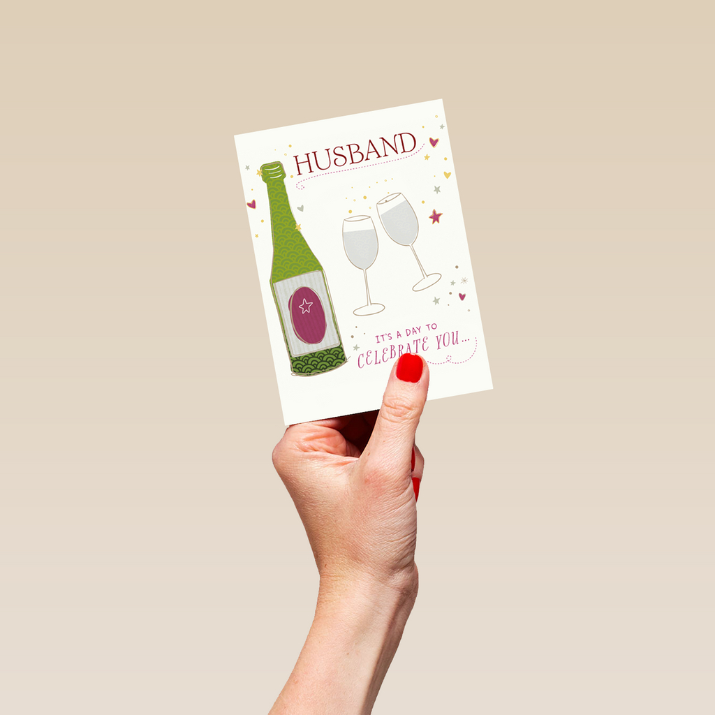 Show them you care with a personalised cheers husband birthday card from Hallmark. Our birthday cards are printed on premium quality, FSC®-certified card & delivered nationwide. This card is available as standard 12cm by 16.7cm and large 15.5cm by 21.6cm.
