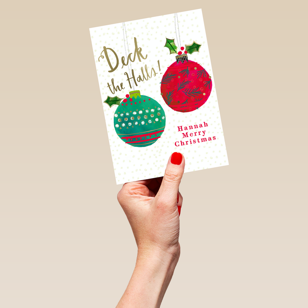 Show them you care with a personalised classic baubles and holly, green & red Christmas ca... View more details