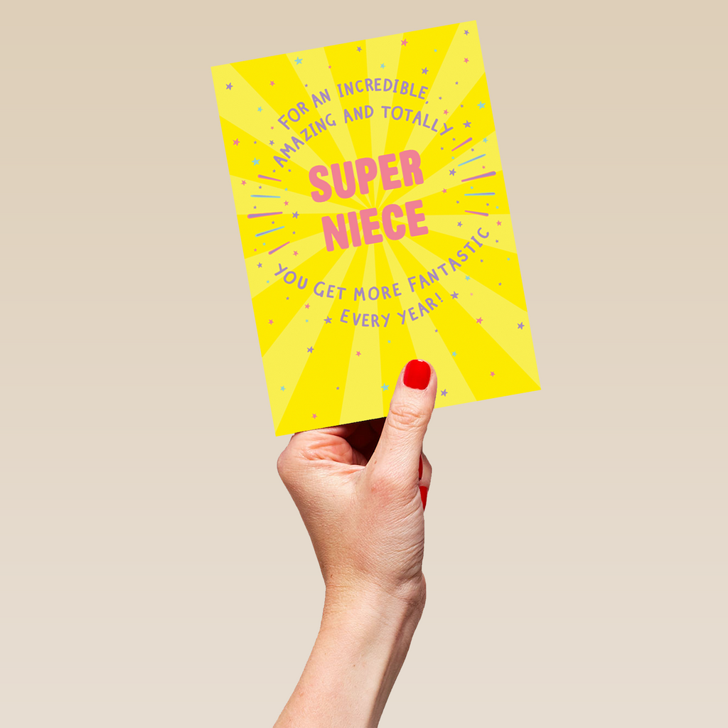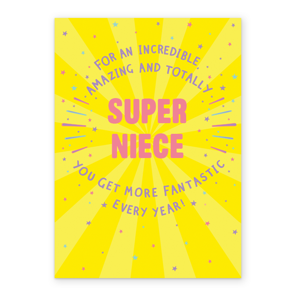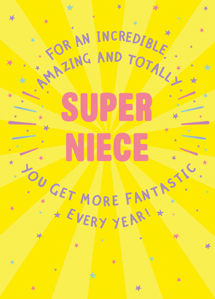 Show them you care with a personalised classic editable fantastic niece birthday card from Hallmark. Our birthday cards are printed on premium quality, FSC®-certified card & delivered nationwide. This card is available as standard 12cm by 16.7cm and large 15.5cm by 21.6cm.