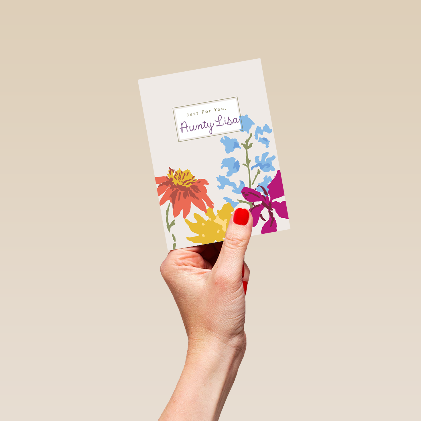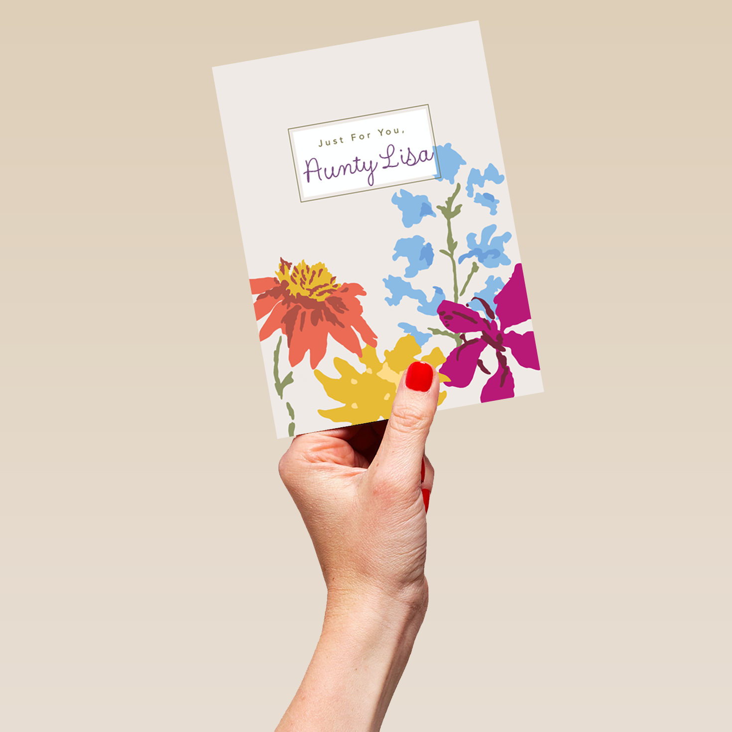 Show them you care with a personalised classic floral birthday card for aunty from Hallmark. Our birthday cards are printed on premium quality, FSC®-certified card & delivered nationwide. This card is available as standard 12cm by 16.7cm and large 15.5cm by 21.6cm.