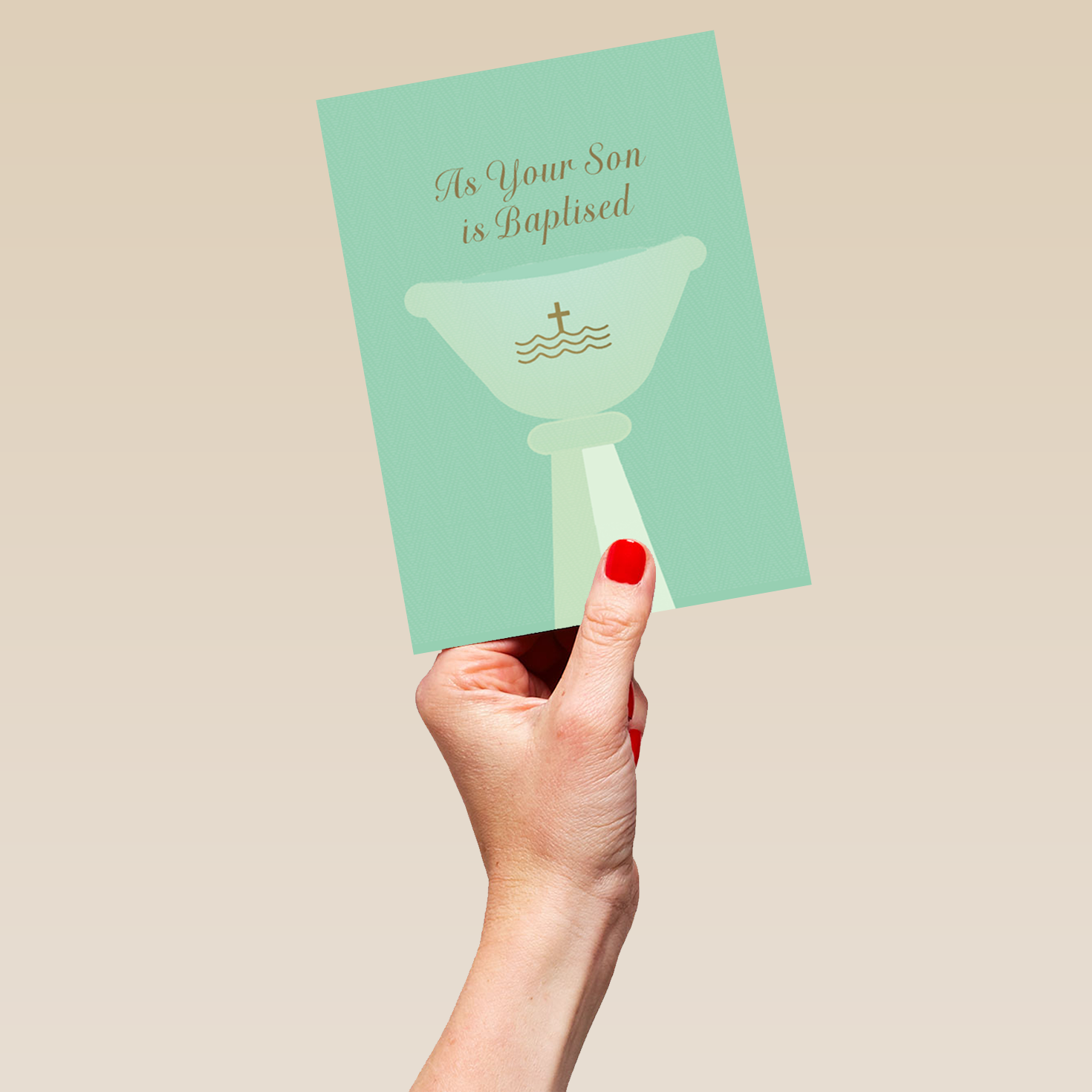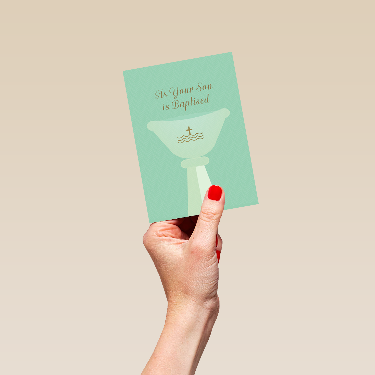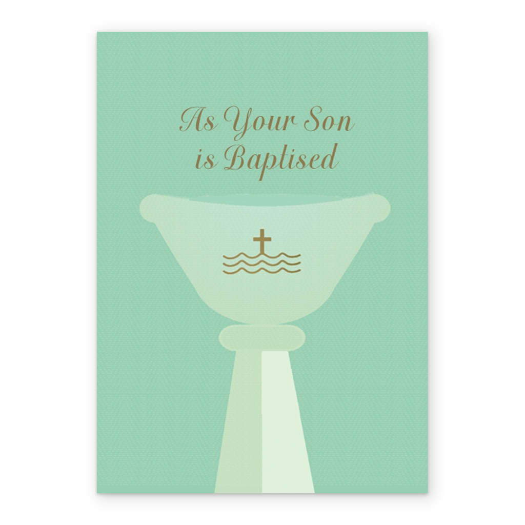 Show them you care with a personalised classic green baptism cross son card from Hallmark. Our greetings cards are printed on premium quality, FSC®-certified card & delivered nationwide. This card is available as standard 12cm by 16.7cm and large 15.5cm by 21.6cm.