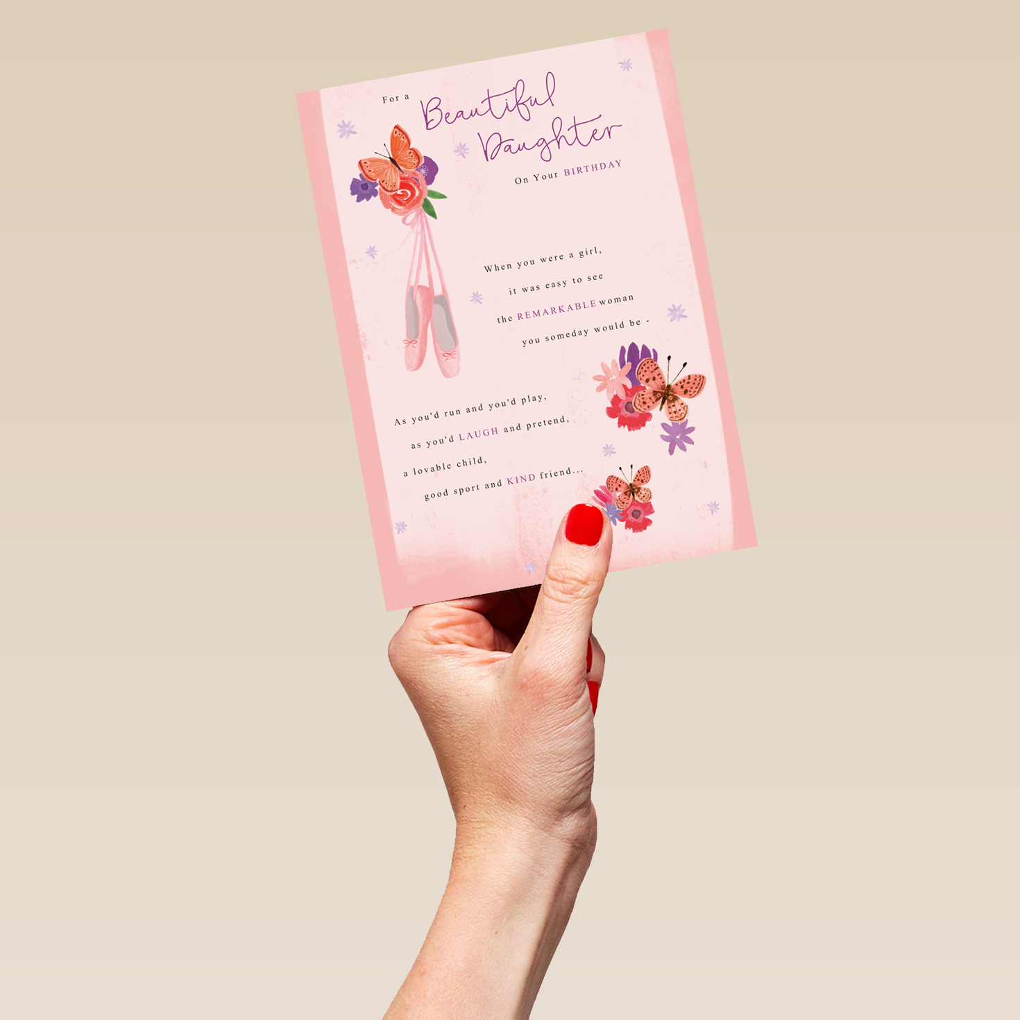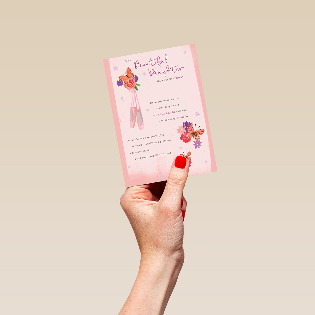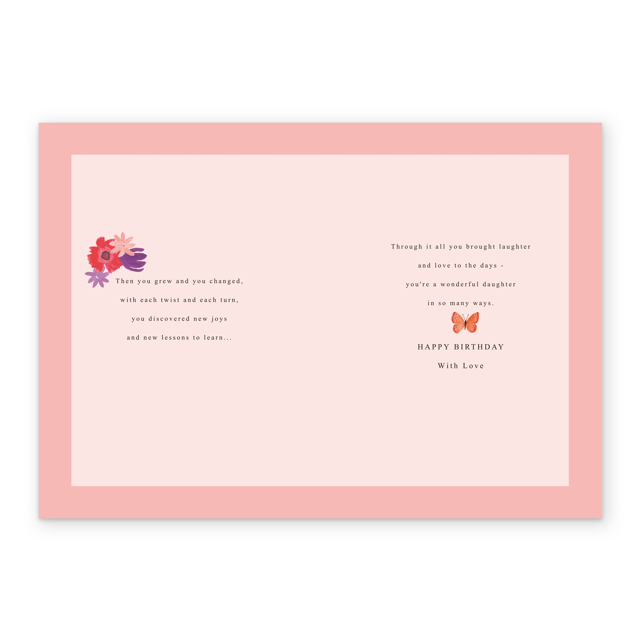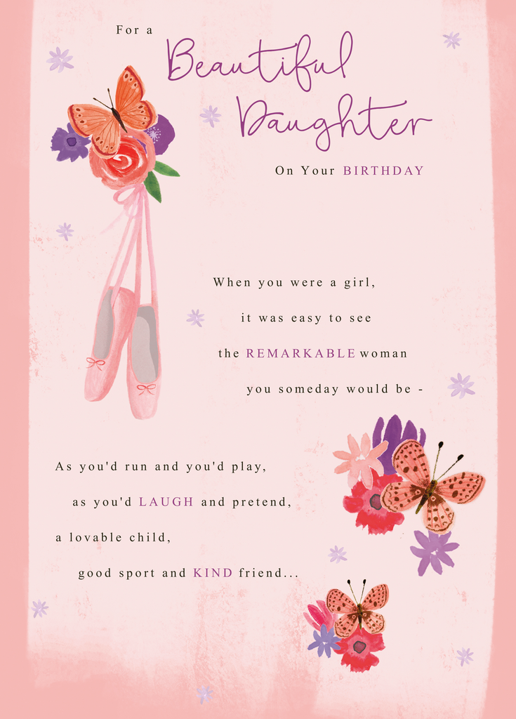 Show them you care with a personalised classic verse birthday card for daughter from Hallmark. Our birthday cards are printed on premium quality, FSC®-certified card & delivered nationwide. This card is available as standard 12cm by 16.7cm and large 15.5cm by 21.6cm.