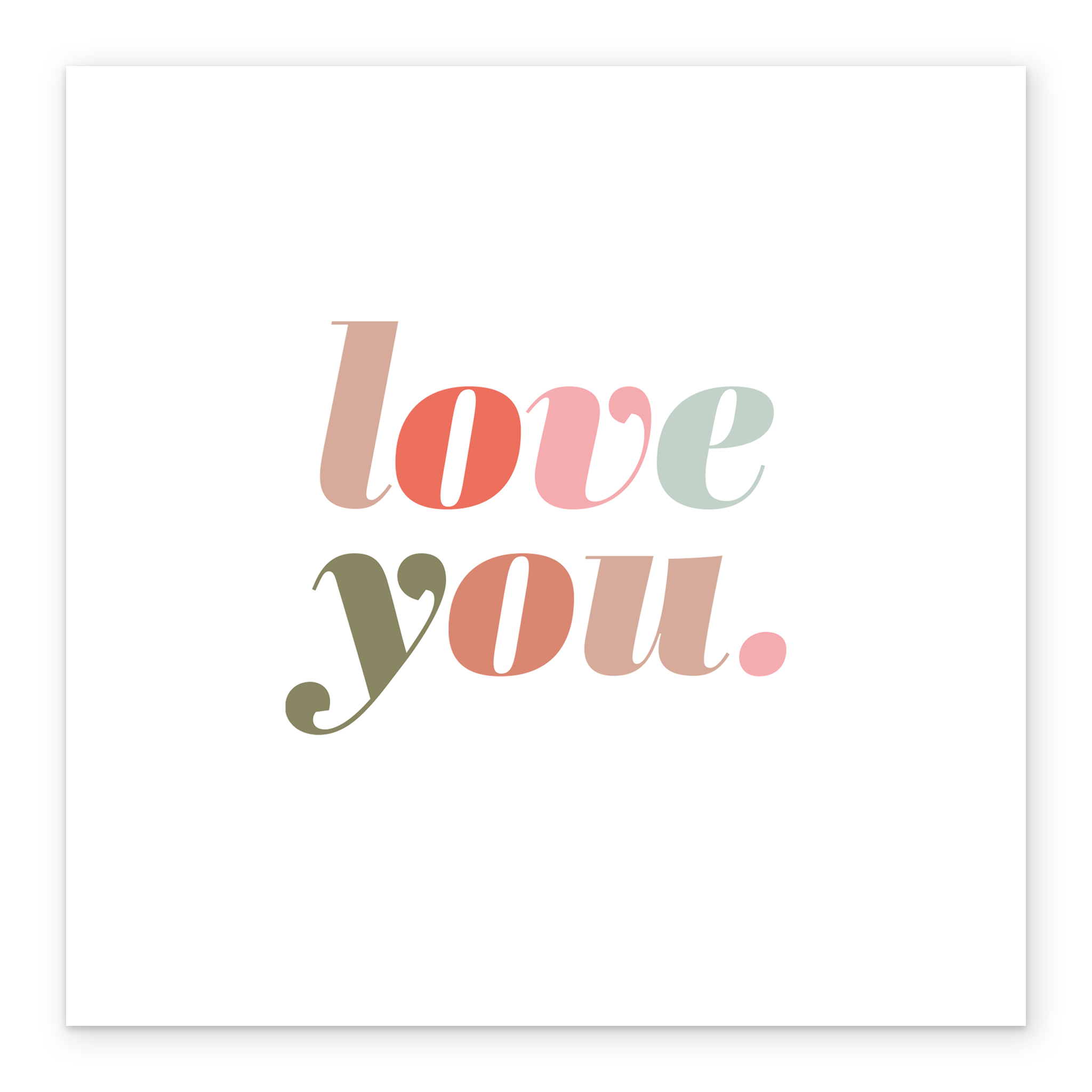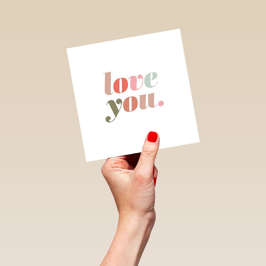 Printed on premium-quality board, this card features colourful text , with the message 'Love you', and comes complete with a co-ordinating white envelope.