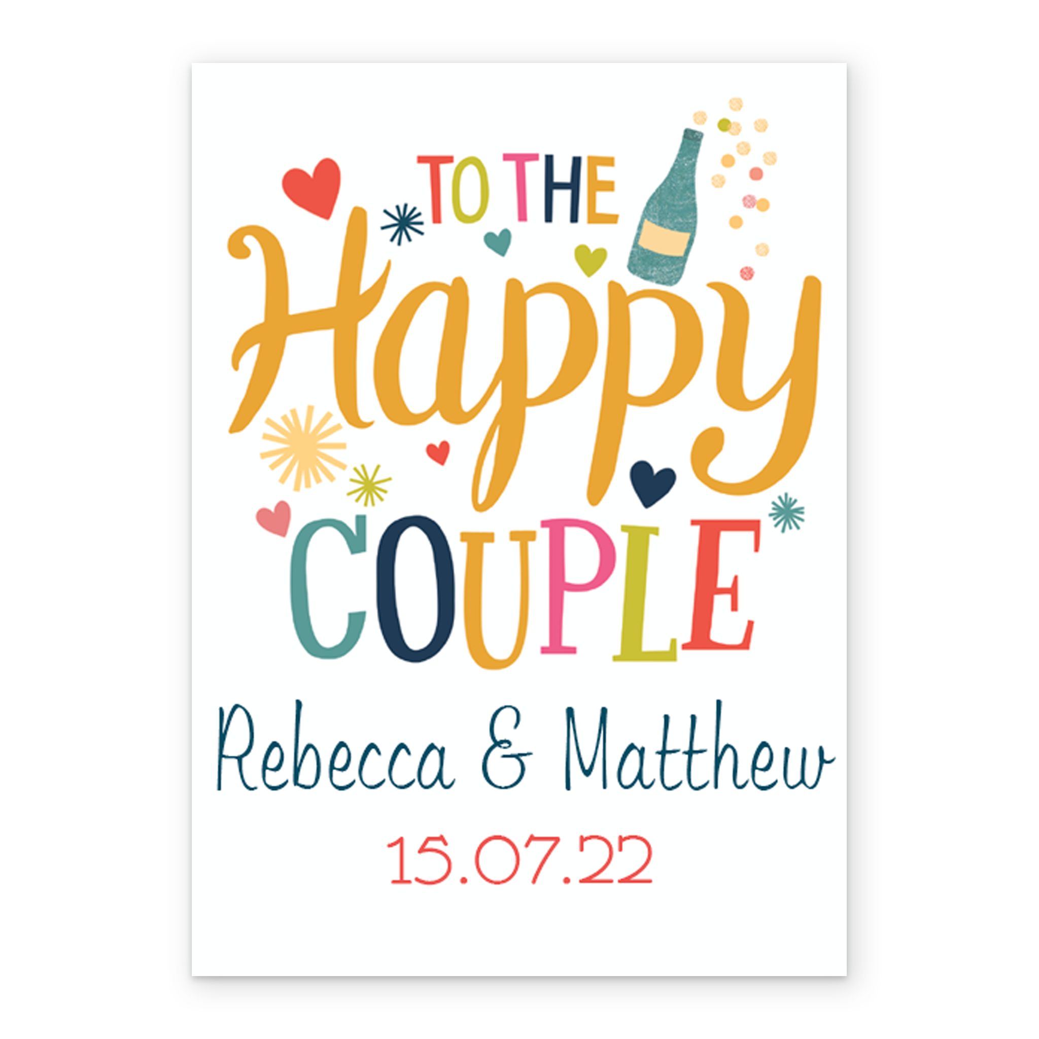 Show them you care with a personalised congratulations on your wedding card from Hallmark. Our wedding cards are printed on premium quality, FSC®-certified card & delivered nationwide. This card is available as standard 12cm by 16.7cm and large 15.5cm by 21.6cm.