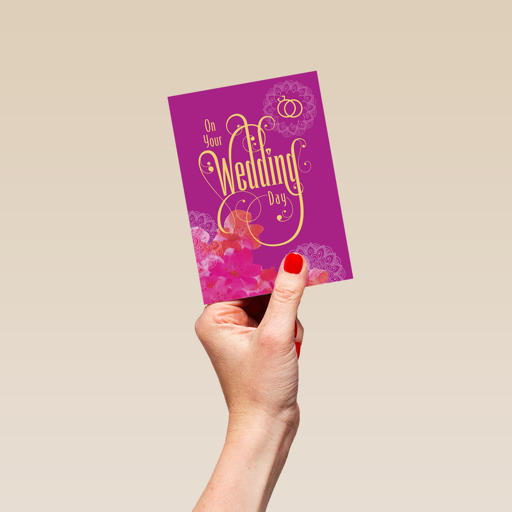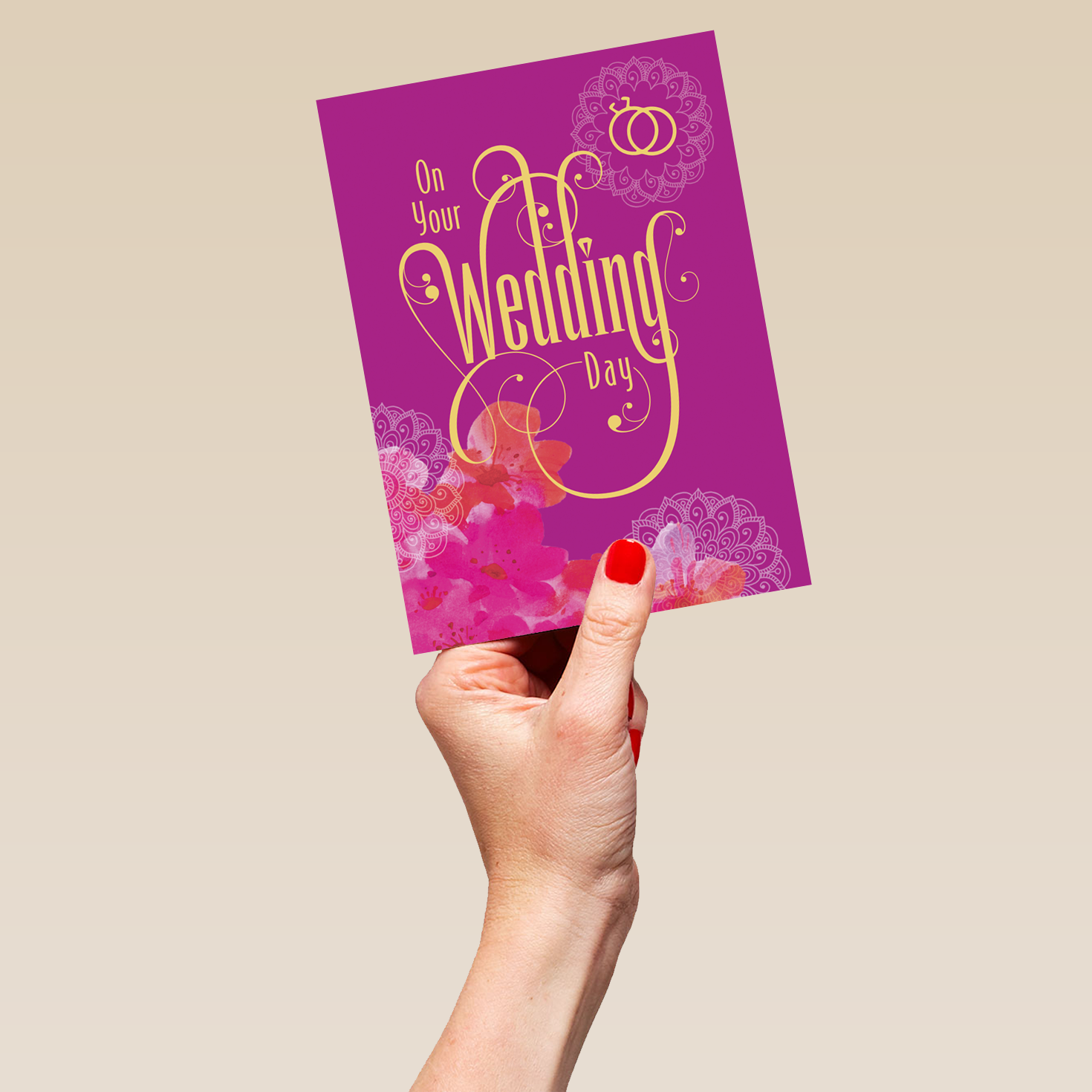 Show them you care with a personalised congratulations on your wedding day card from Hallmark. Our wedding cards are printed on premium quality, FSC®-certified card & delivered nationwide. This card is available as standard 12cm by 16.7cm and large 15.5cm by 21.6cm.