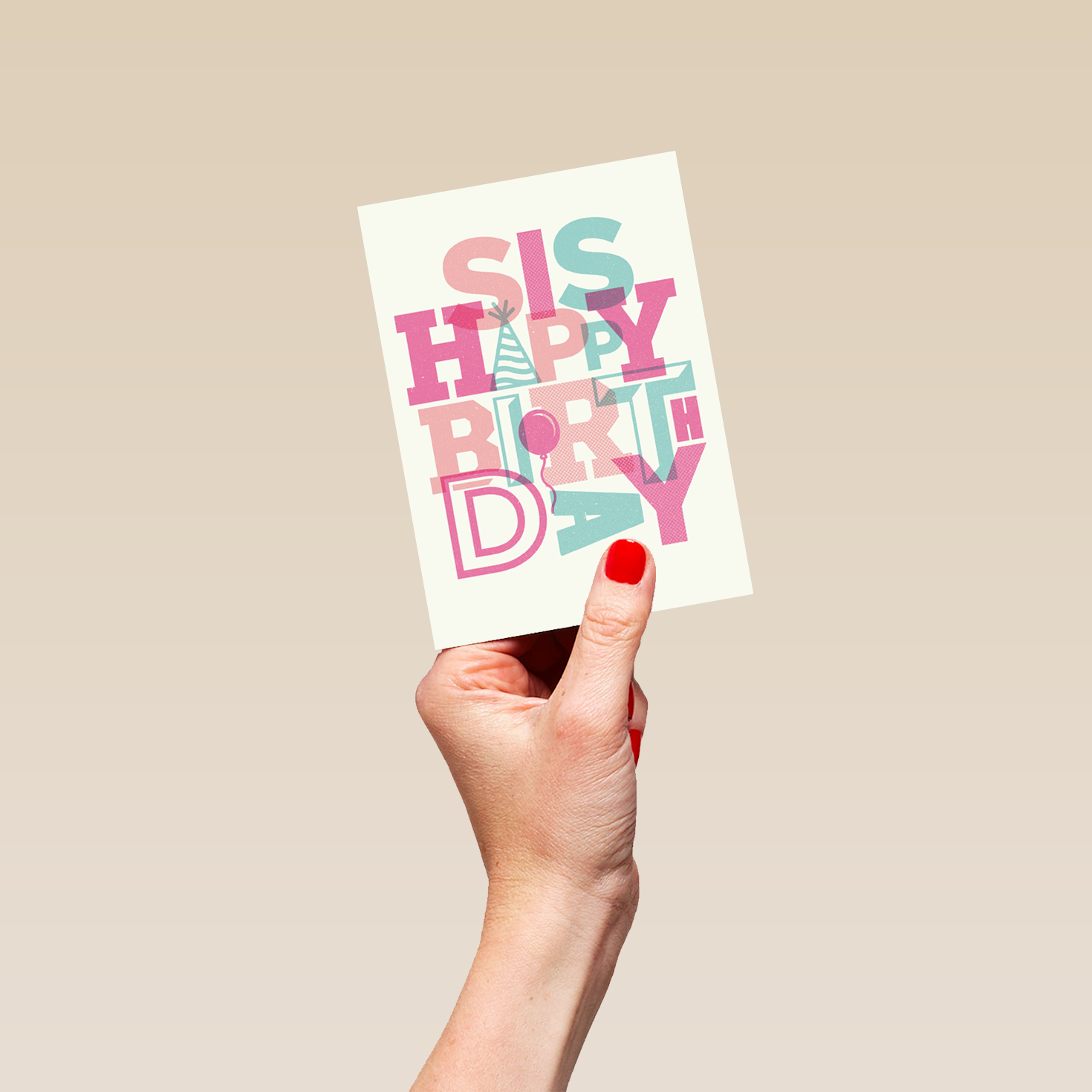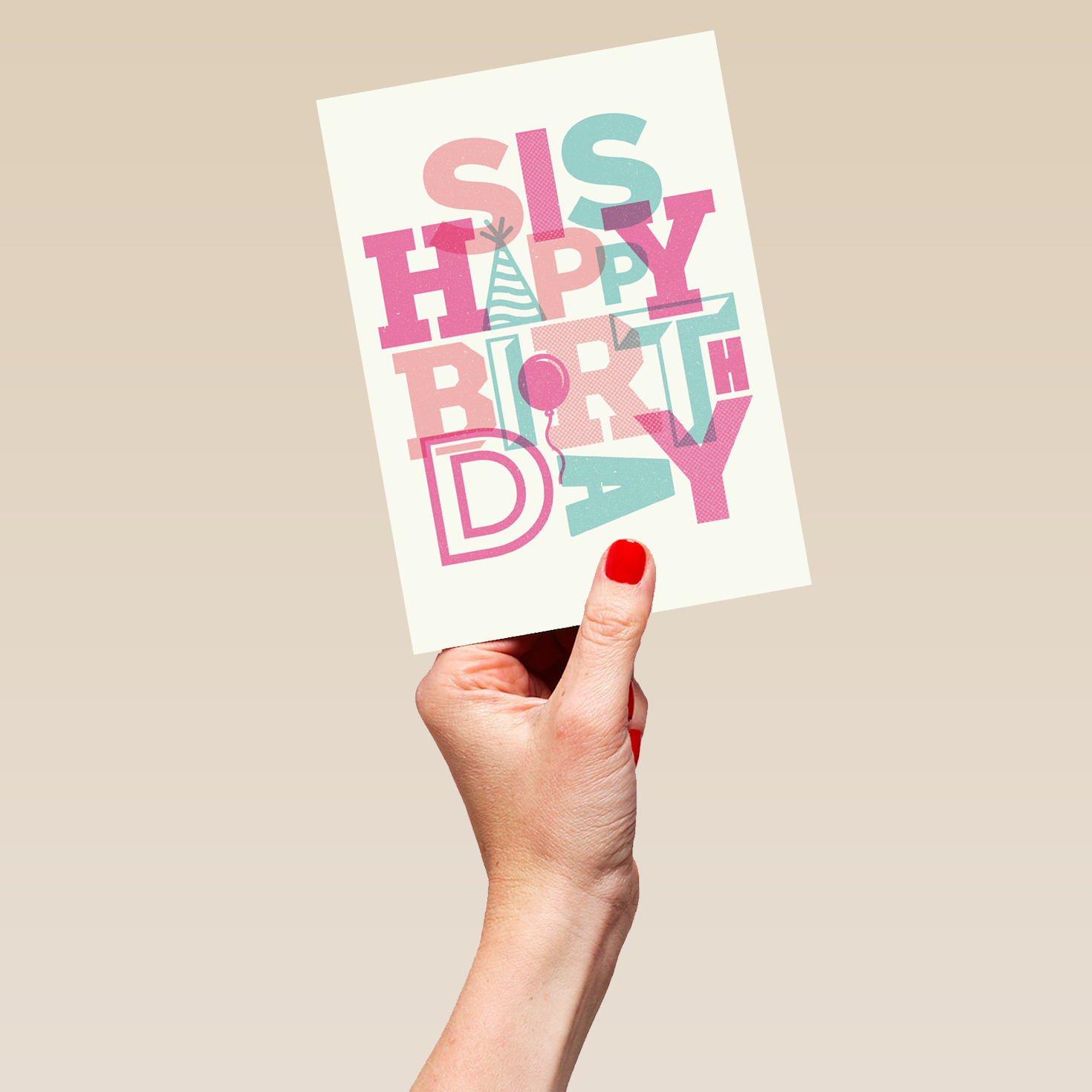 Show them you care with a personalised contemporary birthday card for sister from Hallmark. Our birthday cards are printed on premium quality, FSC®-certified card & delivered nationwide. This card is available as standard 12cm by 16.7cm and large 15.5cm by 21.6cm.
