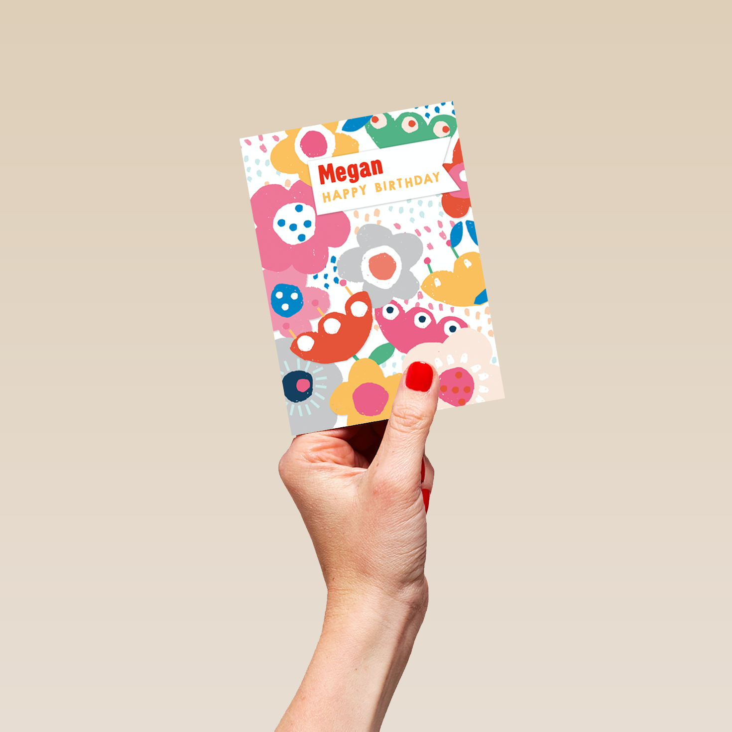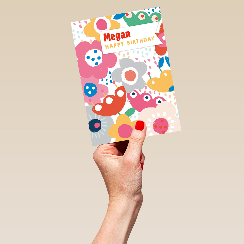 Show them you care with a personalised contemporary editable colourful flowers birthday card from Hallmark. Our greetings cards are printed on premium quality, FSC®-certified card & delivered nationwide.
