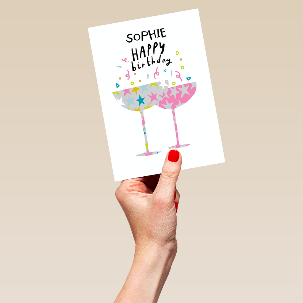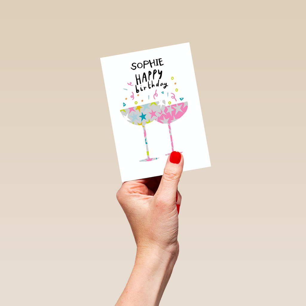 Show them you care with a personalised contemporary illustrated cocktail glasses card from Hallmark. Our birthday cards are printed on premium quality, FSC®-certified card & delivered nationwide.