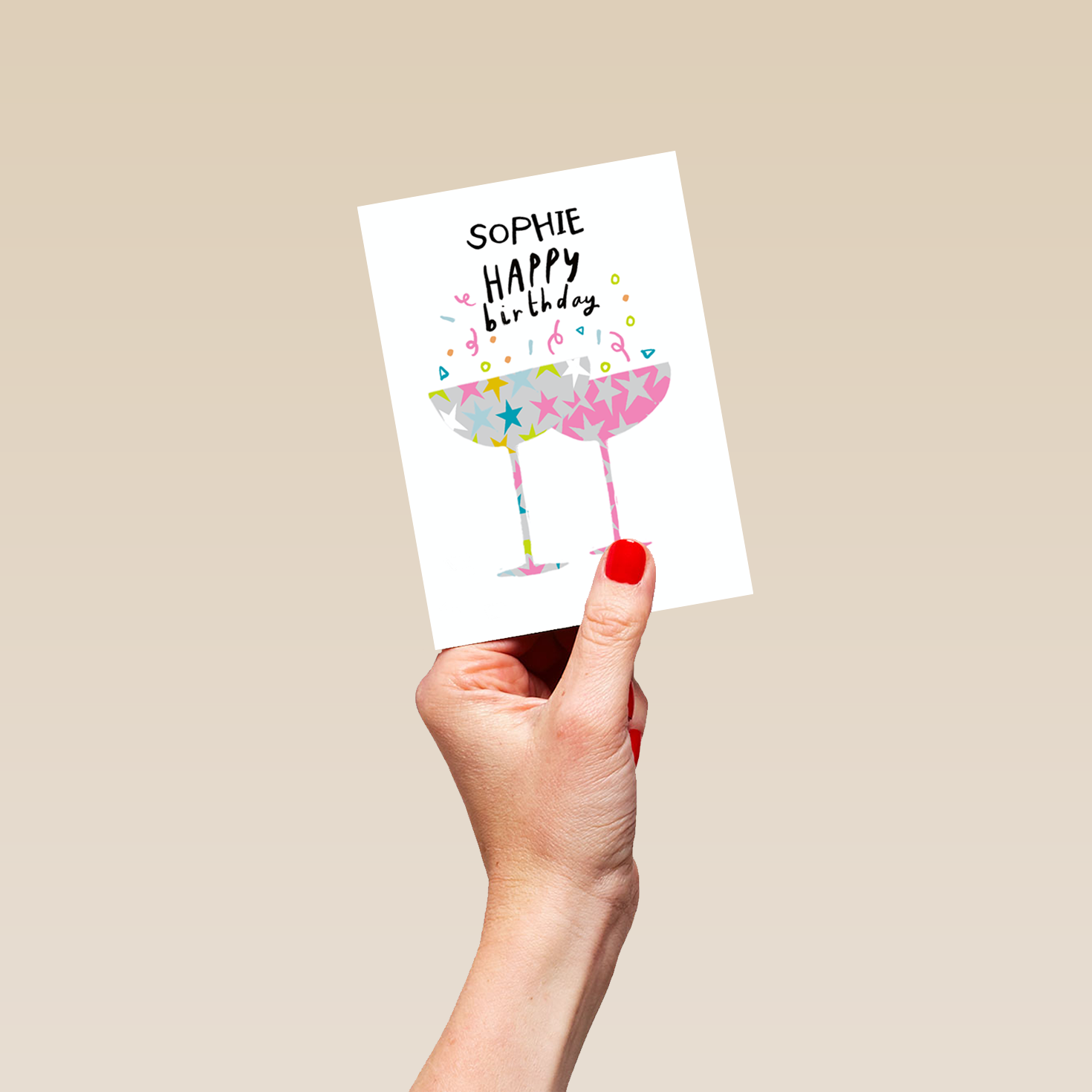Personalised Contemporary Birthday Editable Illustrated Cocktail Glasses Card