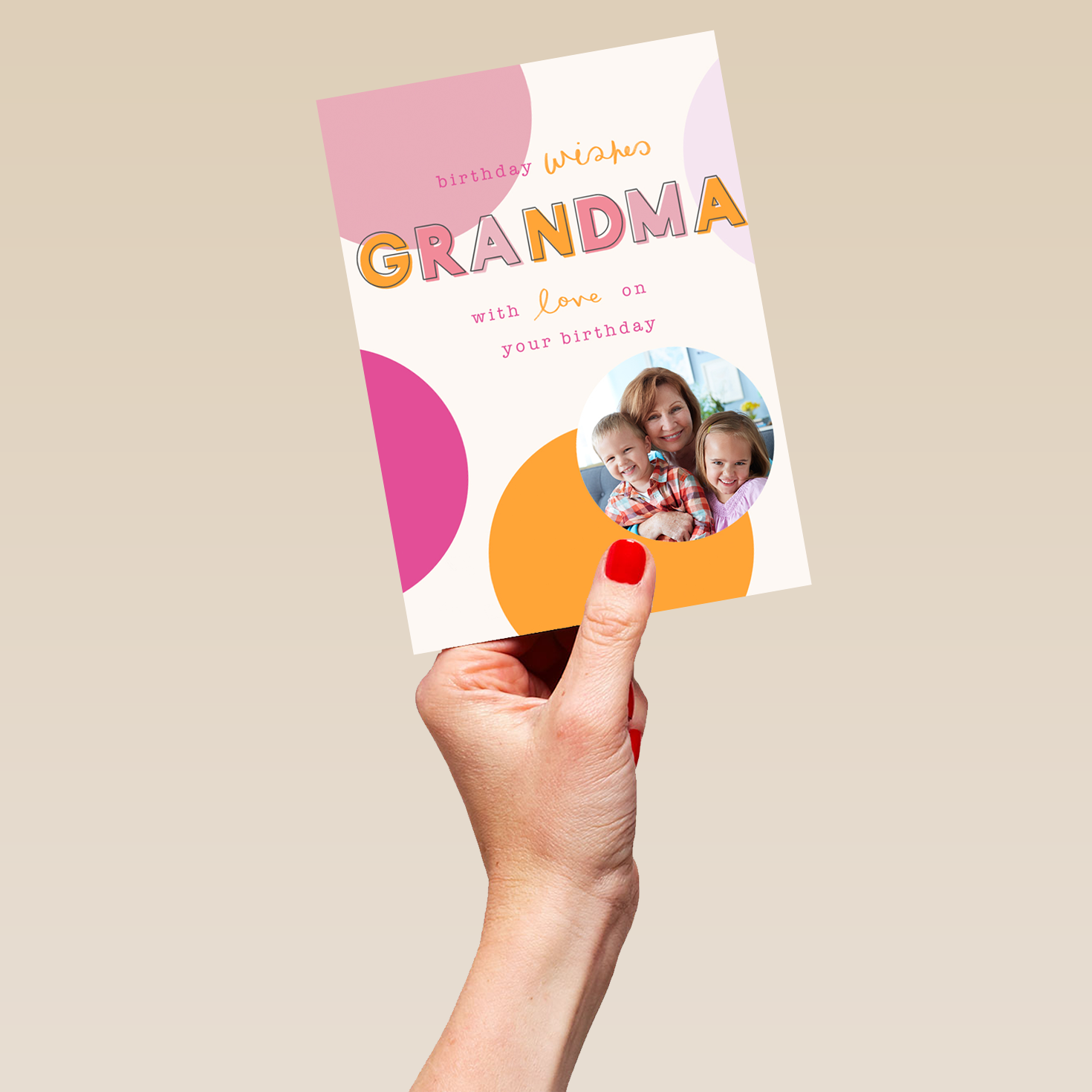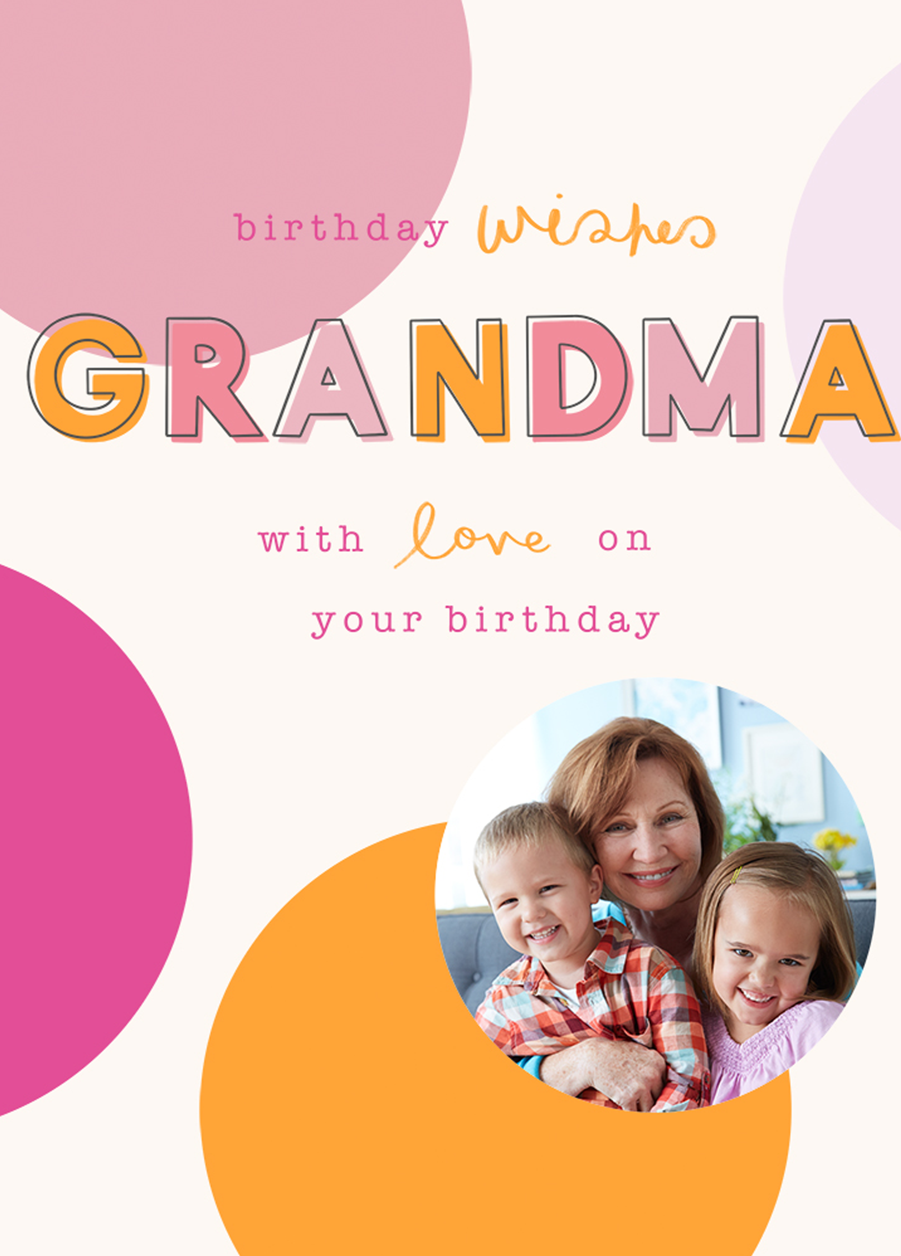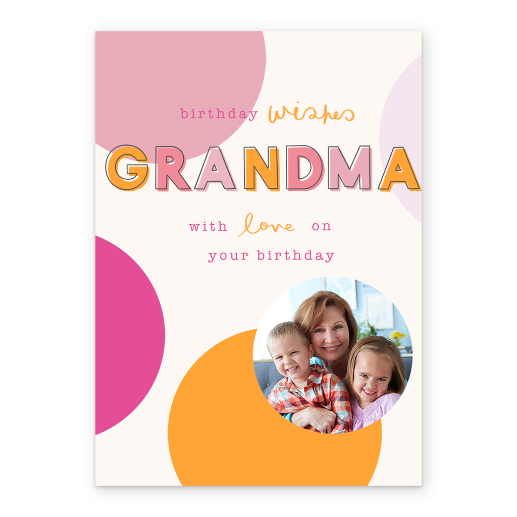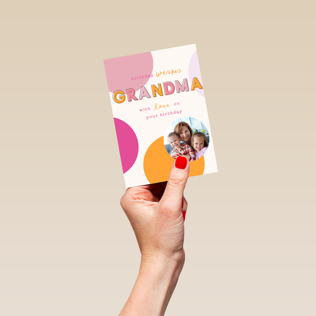 Personalised Contemporary Colourful Spots Photo Birthday Card For Grandma