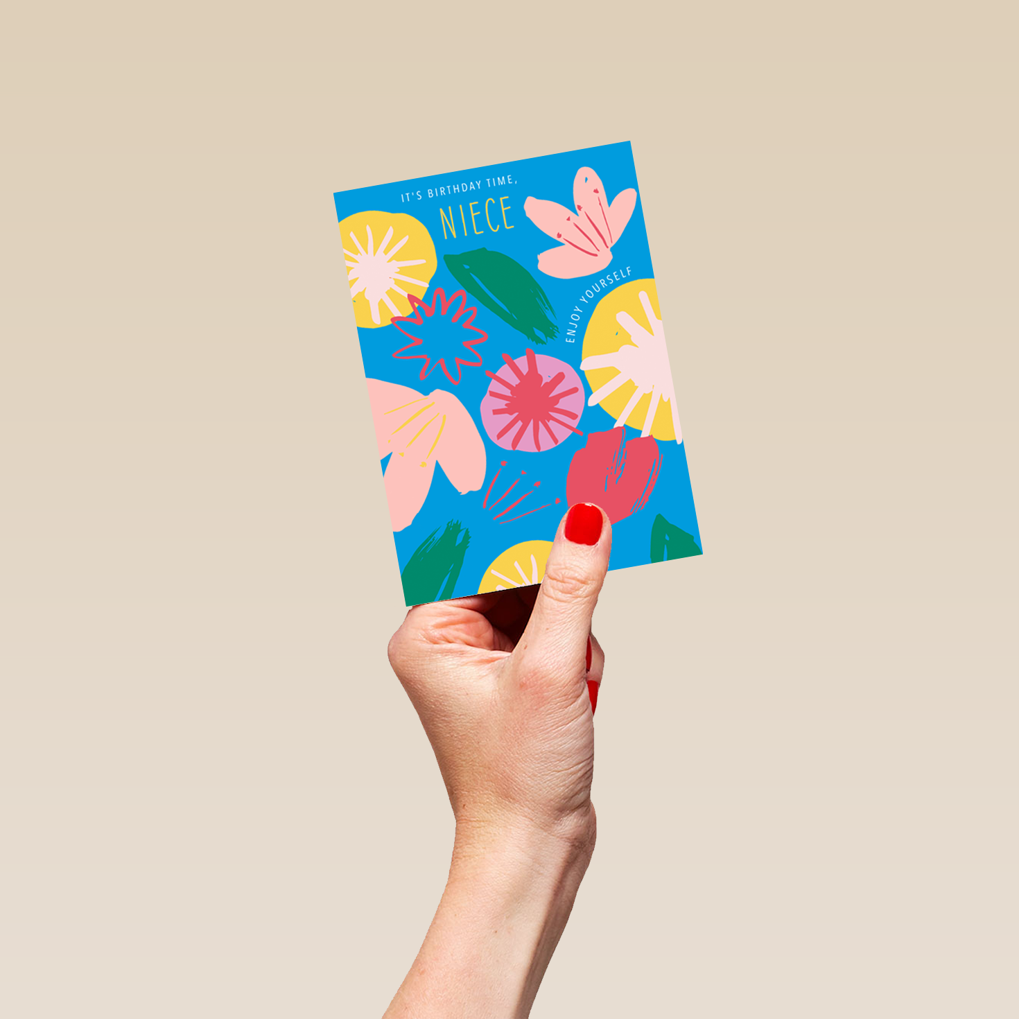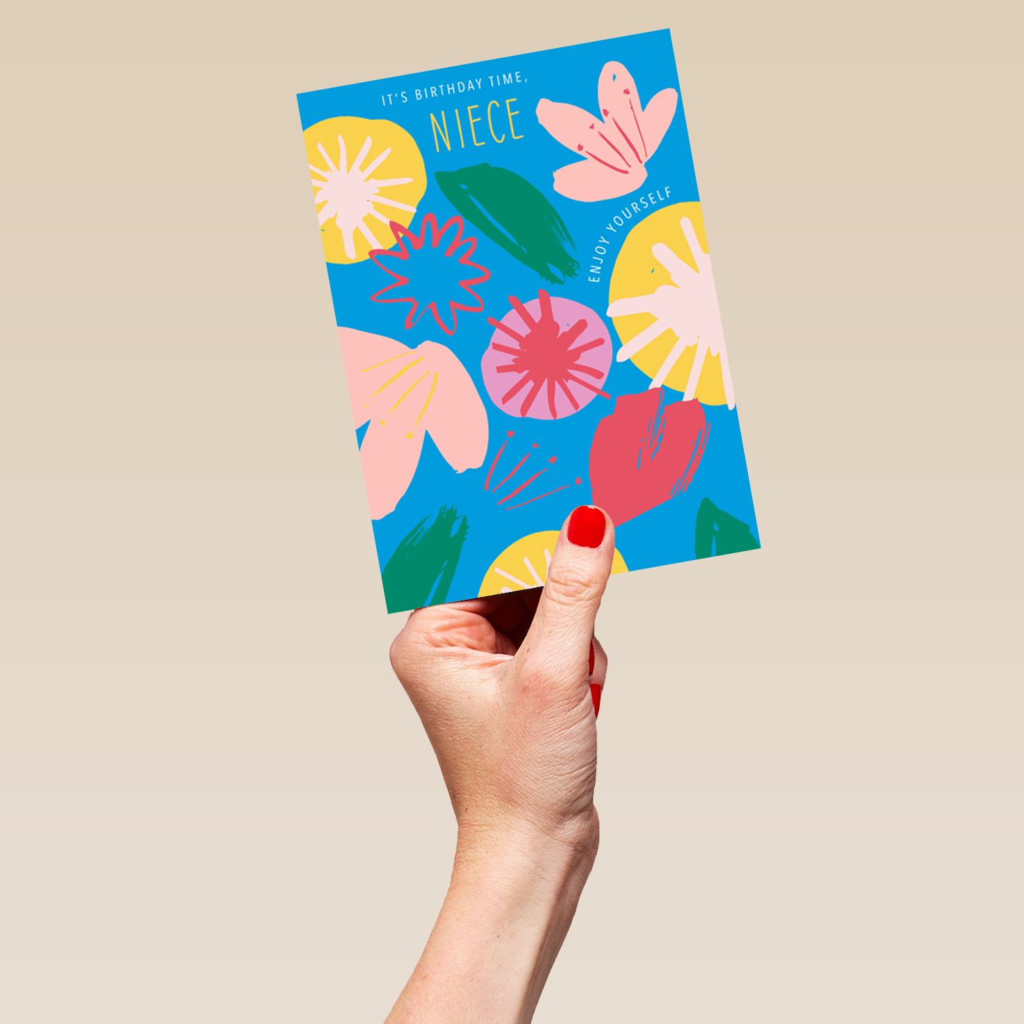 Show them you care with a personalised contemporary editable tropical birthday card for niece from Hallmark. Our birthday cards are printed on premium quality, FSC®-certified card & delivered nationwide. This card is available as standard 12cm by 16.7cm and large 15.5cm by 21.6cm.