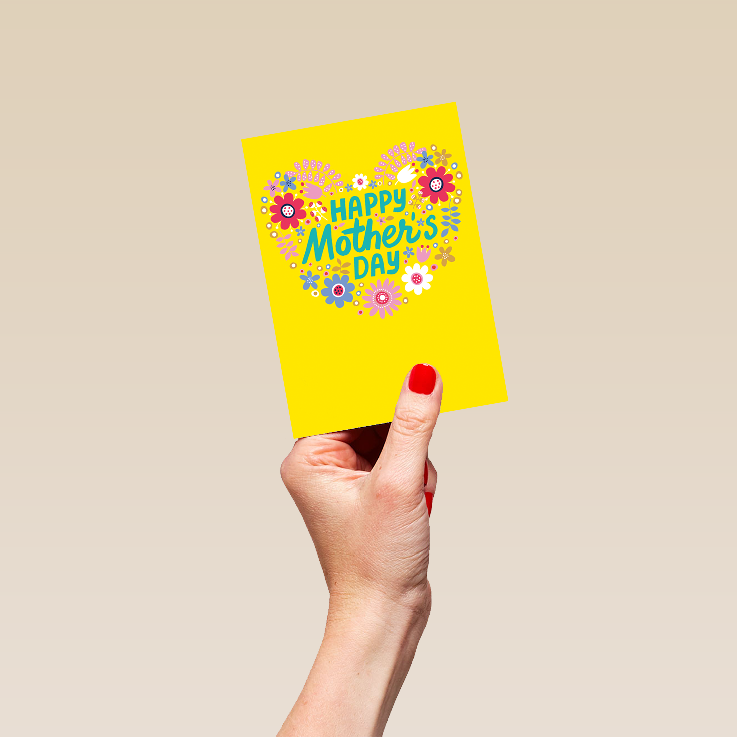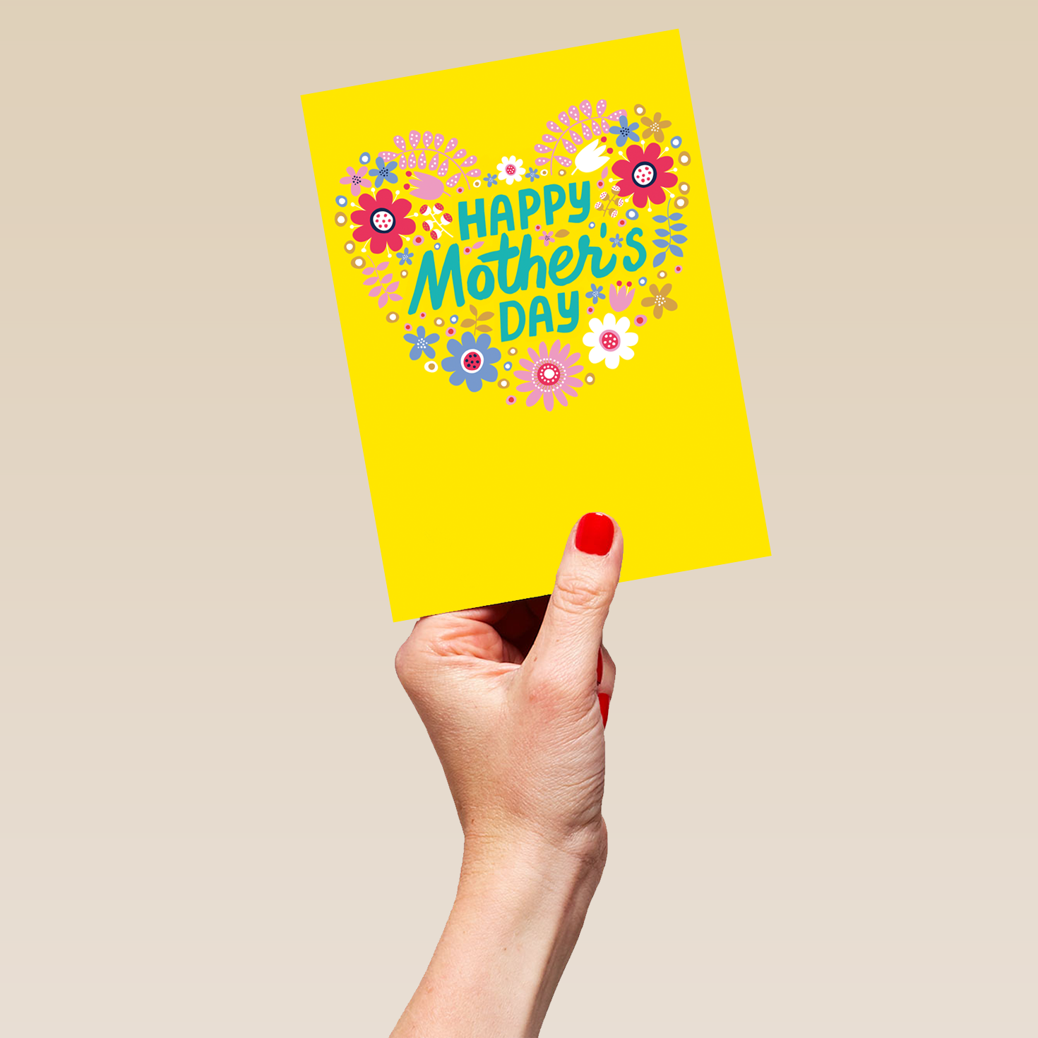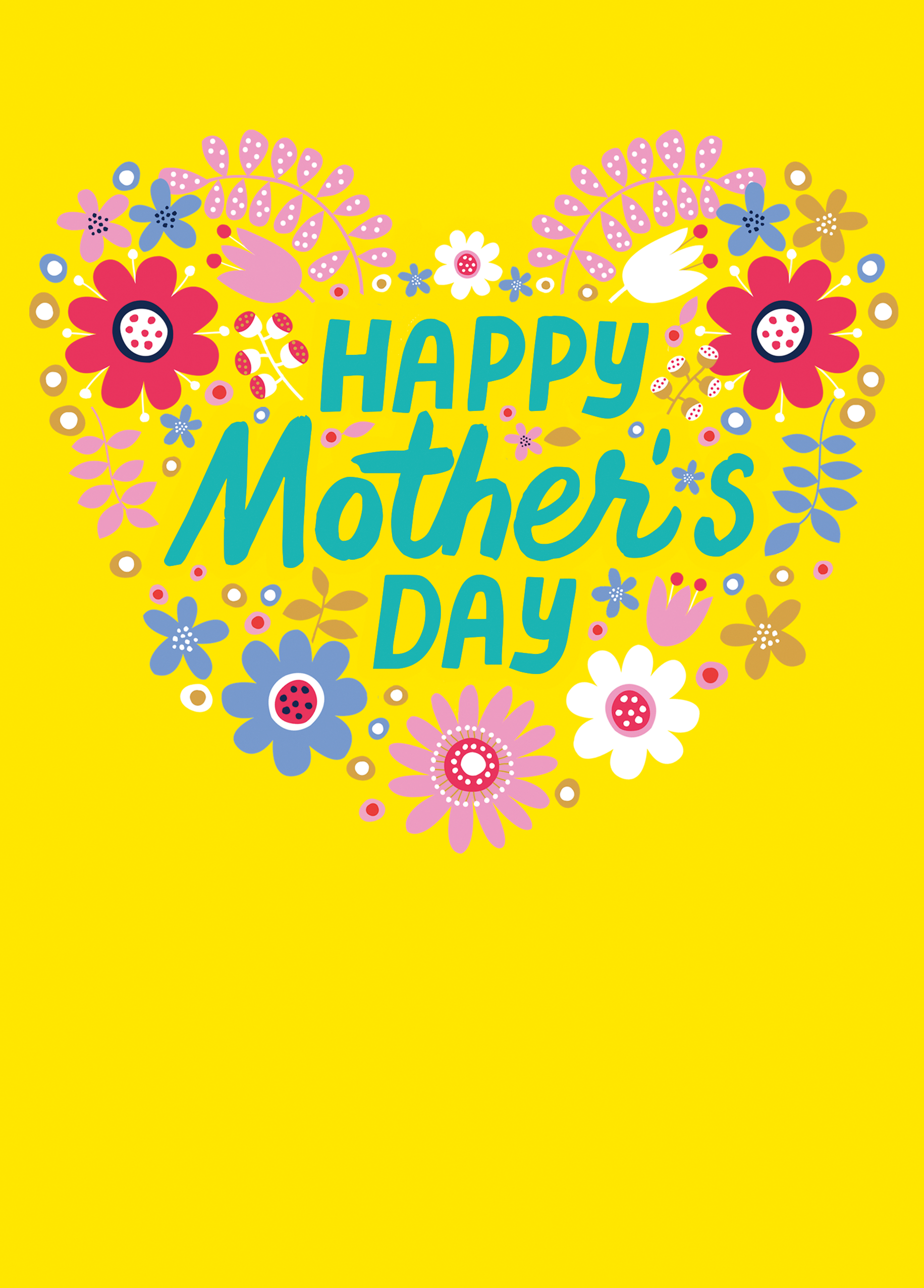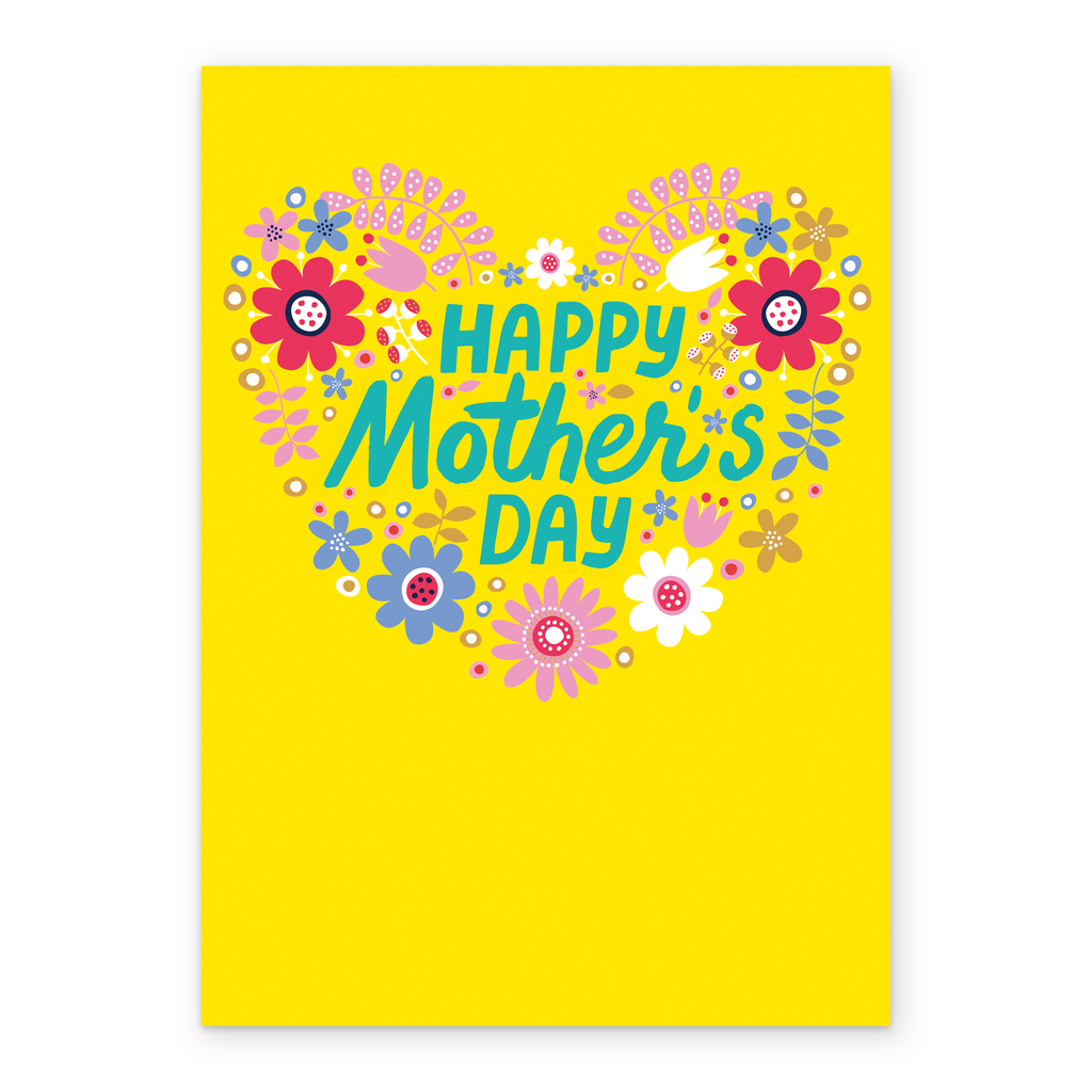 Printed on premium-quality board, this card features floral heart design, with the message 'Happy Mother's Day', and comes complete with a co-ordinating white envelope.