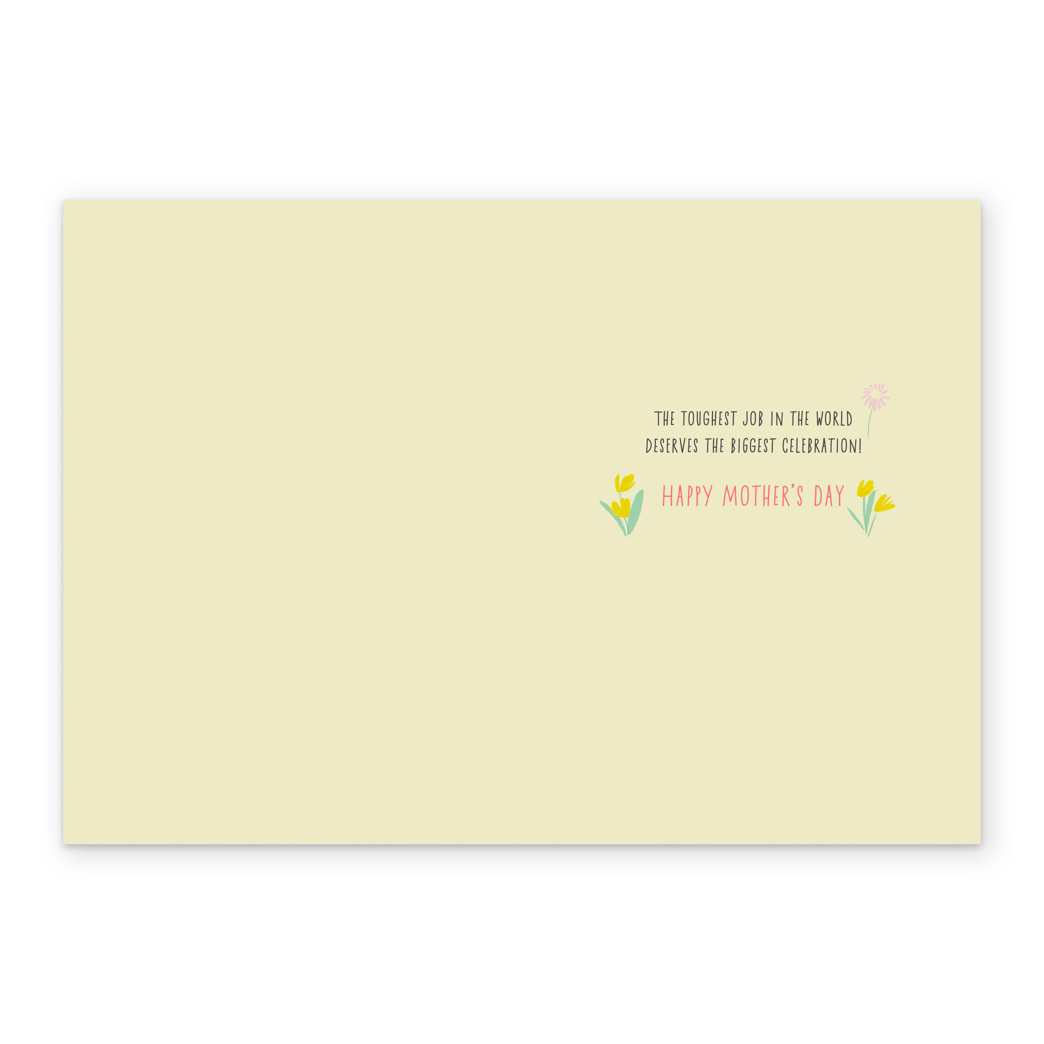 Message inside reads: The toughest job in the world deserves the biggest celebration! Happy Mother's Day