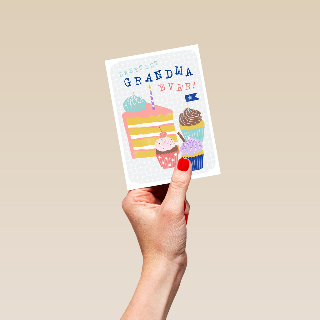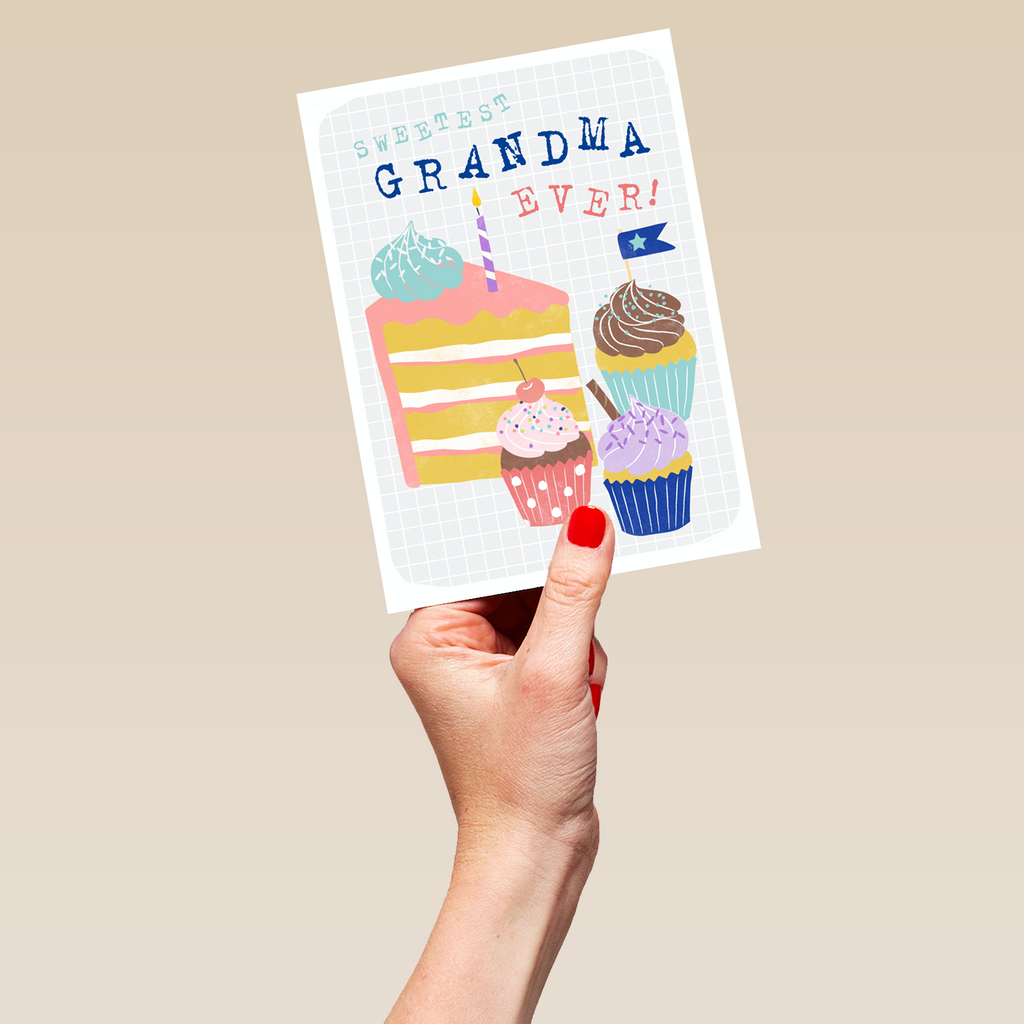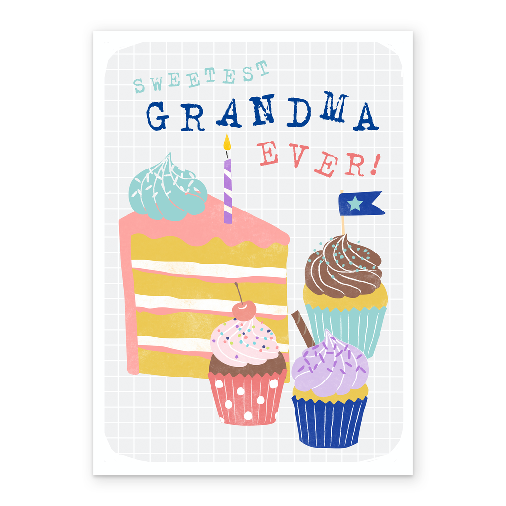 Show them you care with a personalised contemporary 'sweetest grandma ever' birthday card from Hallmark. Our birthday cards are printed on premium quality, FSC®-certified card & delivered nationwide. This card is available as standard 12cm by 16.7cm and large 15.5cm by 21.6cm.