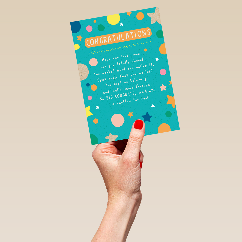 Show them you care with a personalised contemporary verse congratulations card from Hallmark. Our congratulations cards are printed on premium quality, FSC®-certified card & delivered nationwide. This card is available as standard 12cm by 16.7cm and large 15.5cm by 21.6cm.