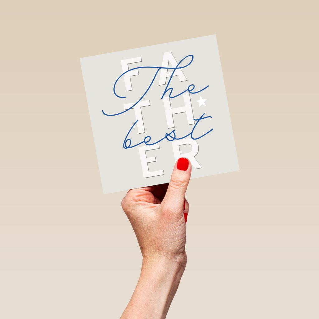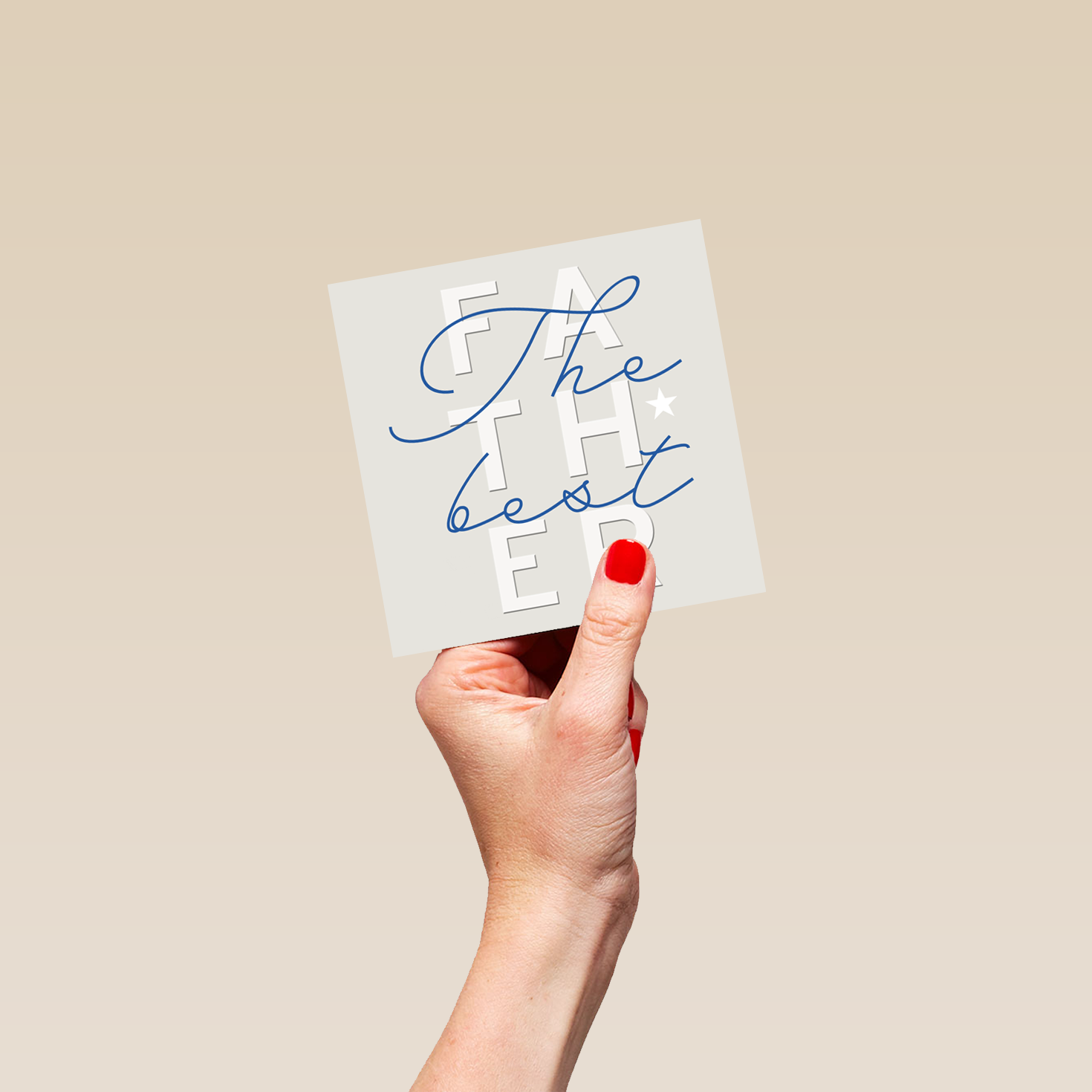 Printed on premium-quality board, this card features a contemporary word art design, with the message 'The Best Father', and comes complete with a co-ordinating white envelope.