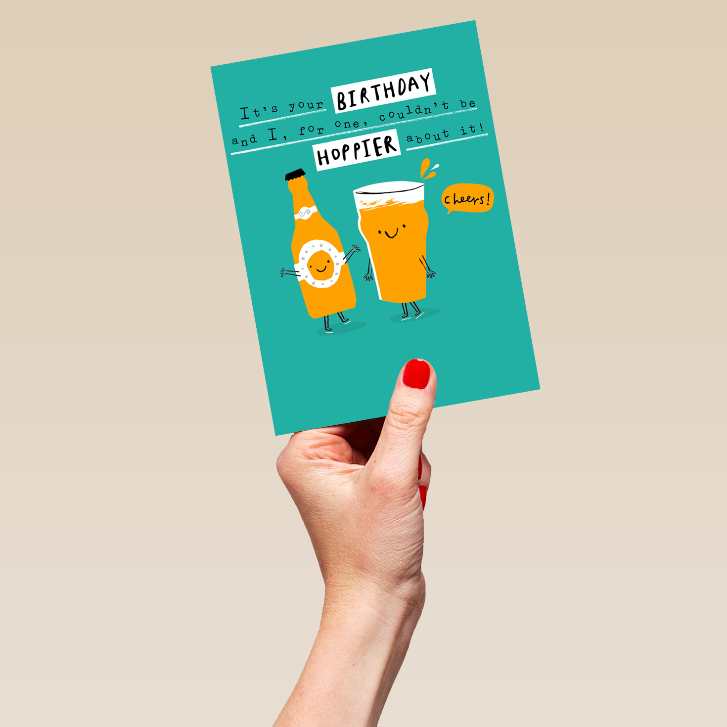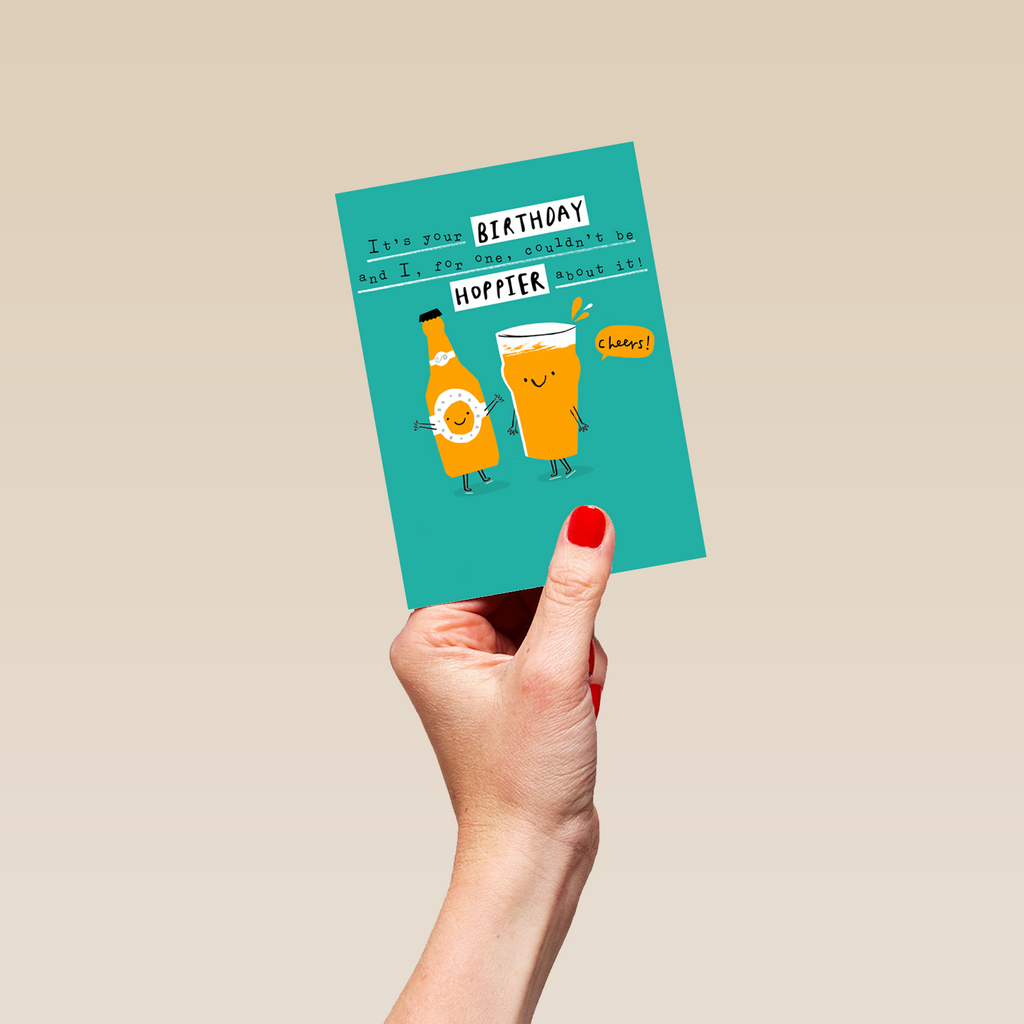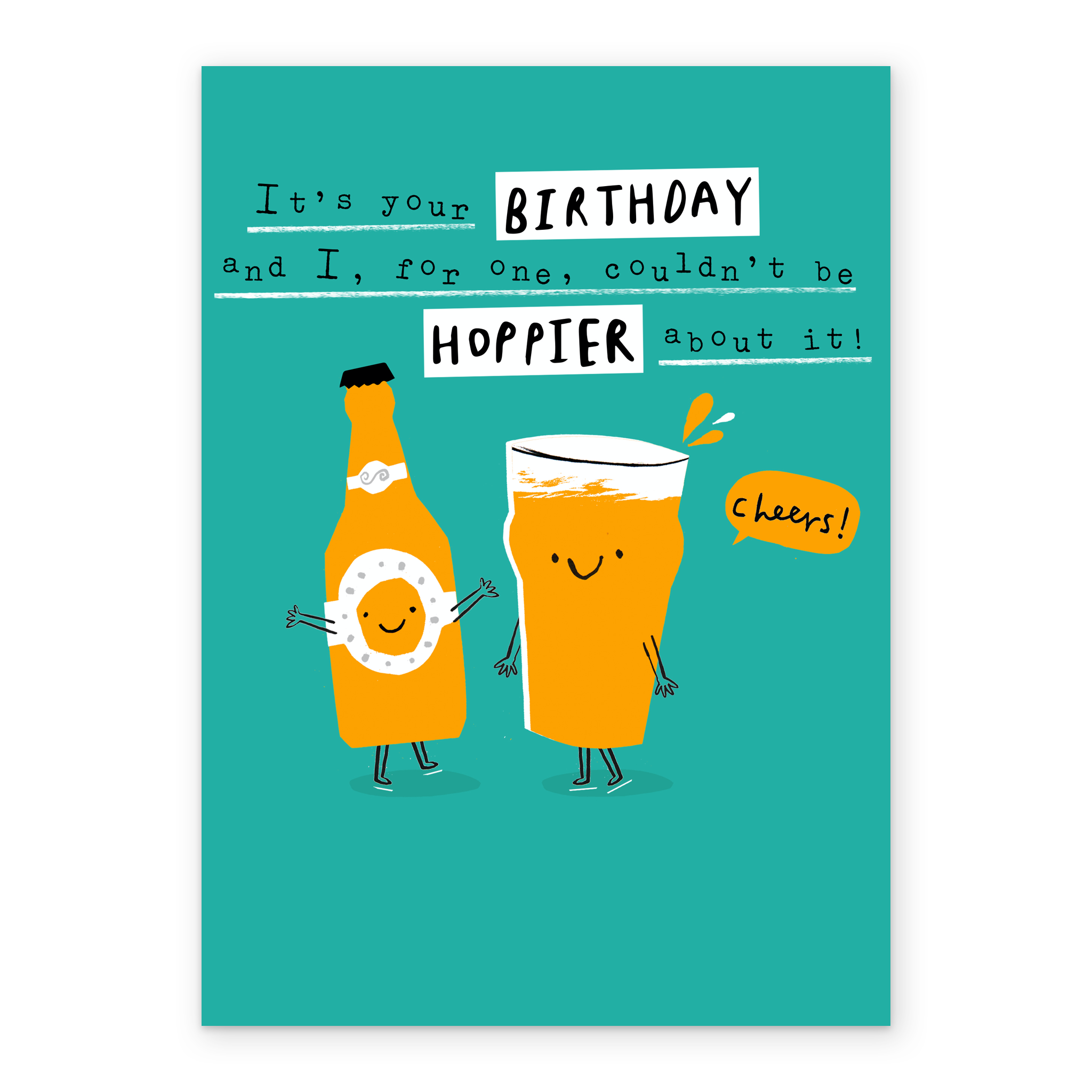 Show them you care with a personalised couldn't be hoppier illustrated beer birthday card from... View more details