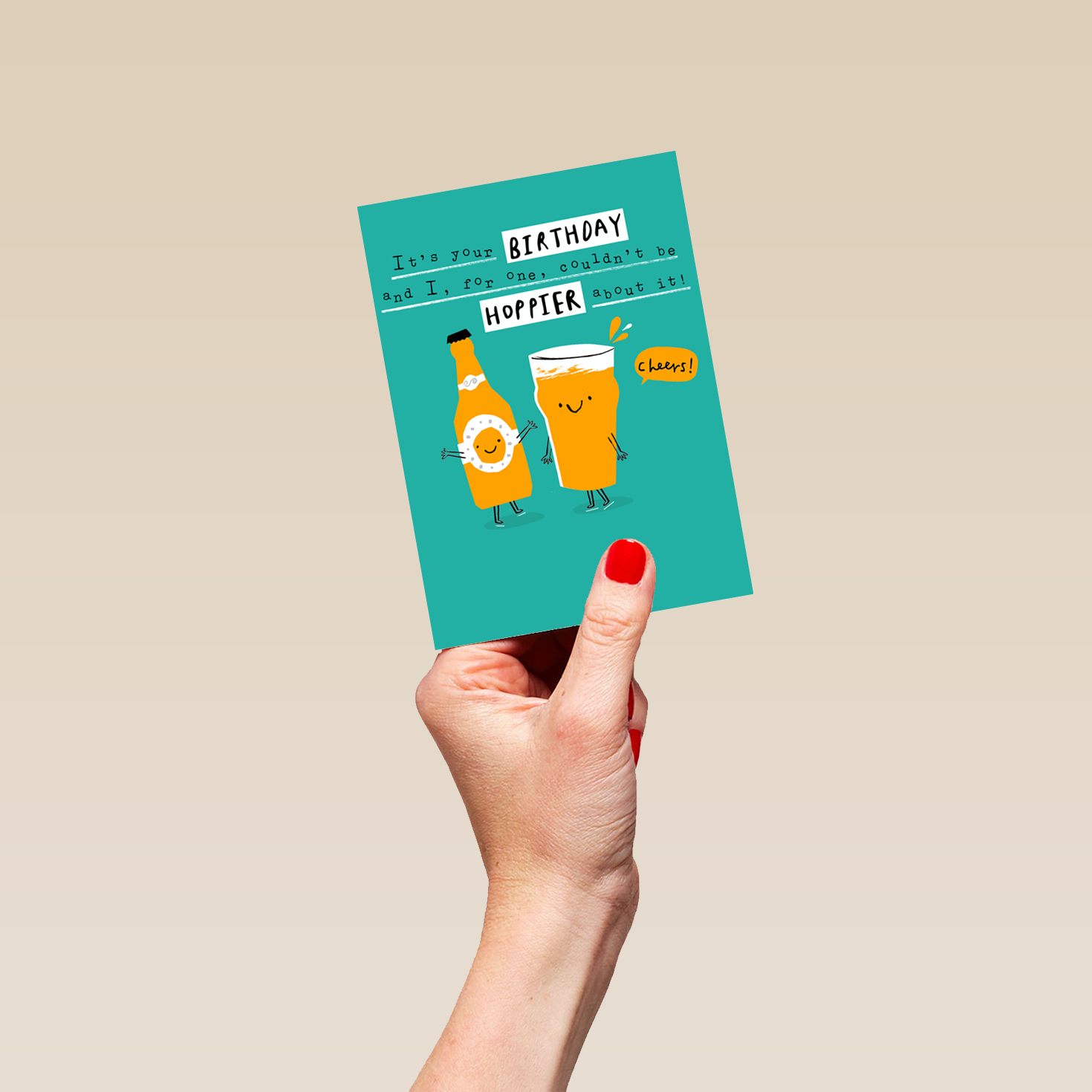 Personalised Couldn't Be Hoppier Illustrated Beer Birthday Card