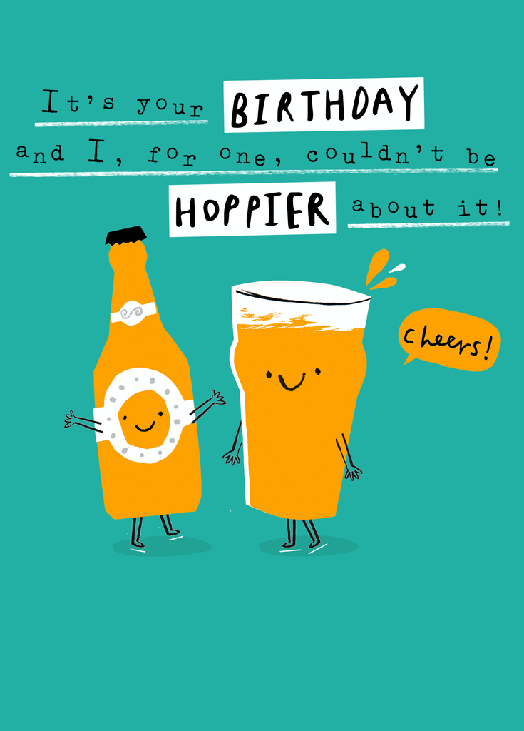 Show them you care with a personalised couldn't be hoppier illustrated beer birthday card from Hallmark. Our birthday cards are printed on premium quality, FSC®-certified card & delivered nationwide.