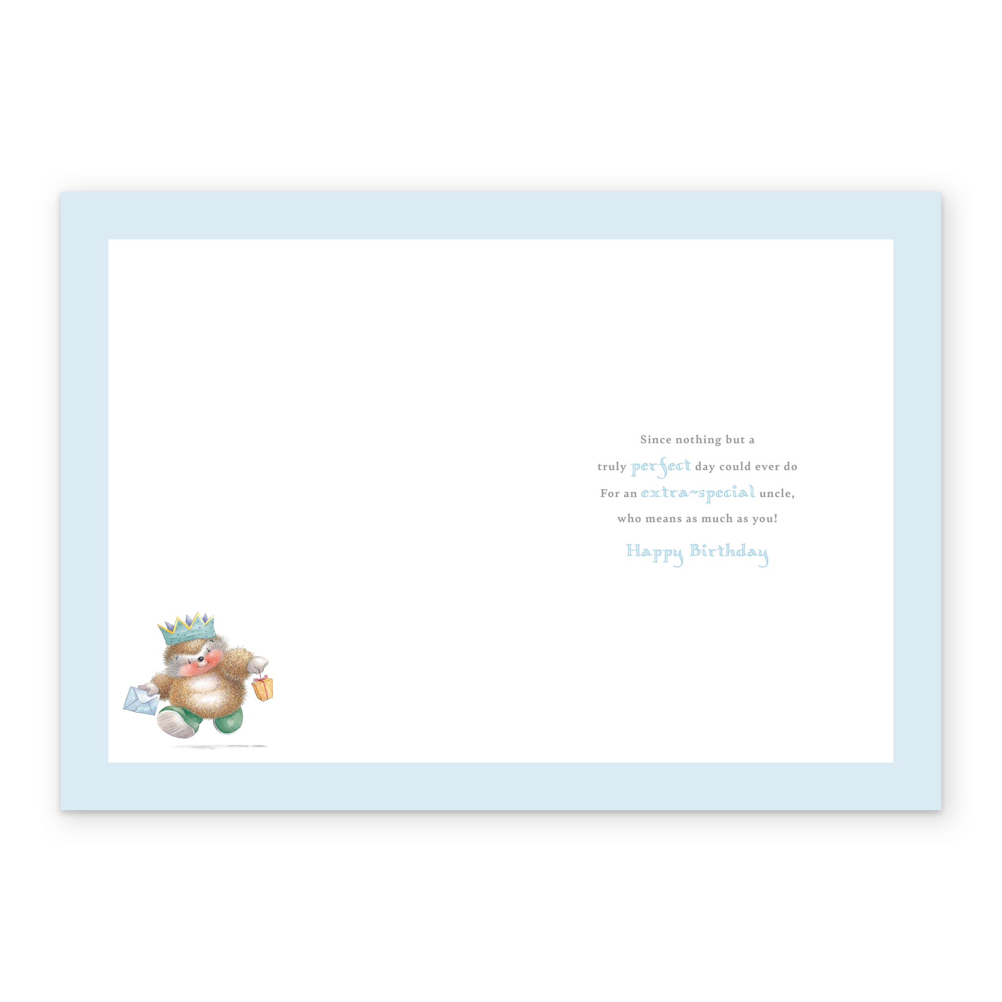 Message inside reads: Since nothing but a truly perfect day could ever do for an extra-special uncle who means as much as you! Happy birthday