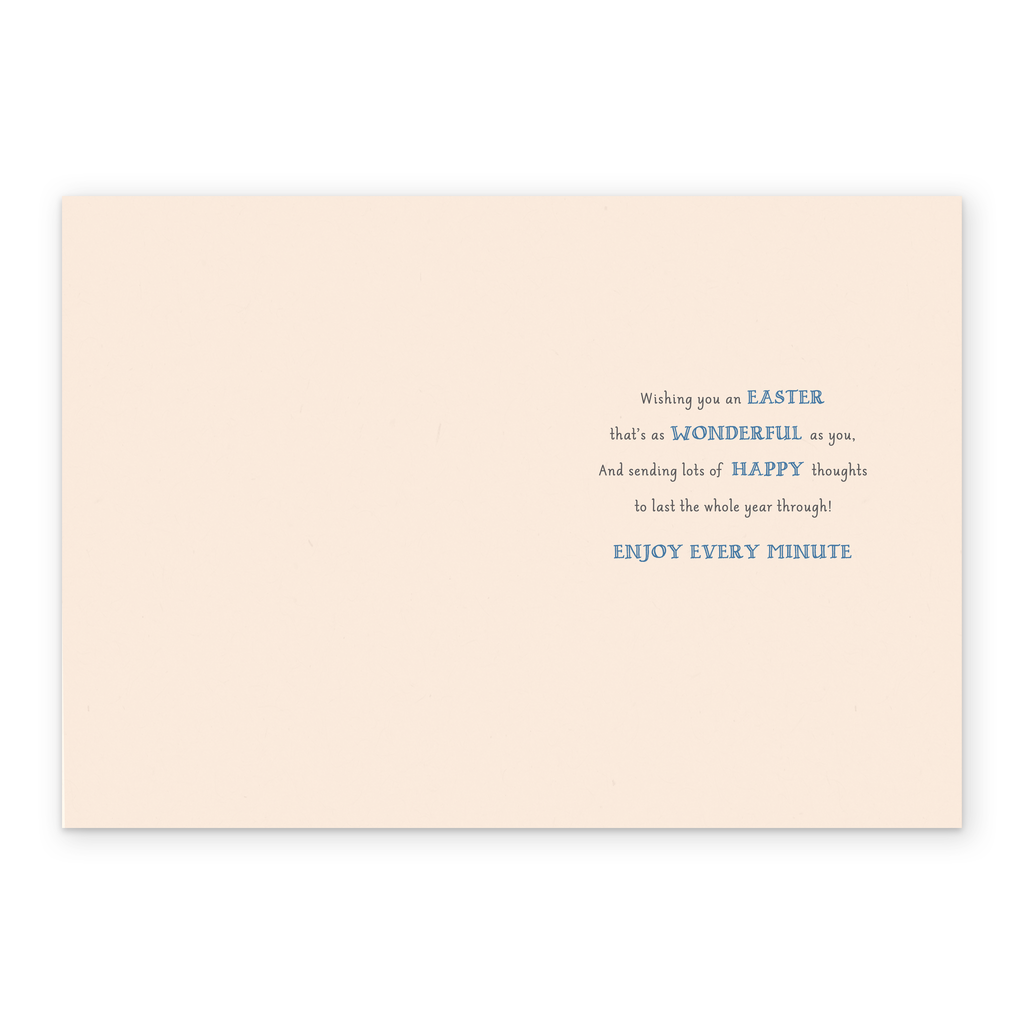 Message inside reads: Wishing you an Easter that’s as wonderful as you, and sending lots of happy thoughts to last the whole year through! Enjoy every minute