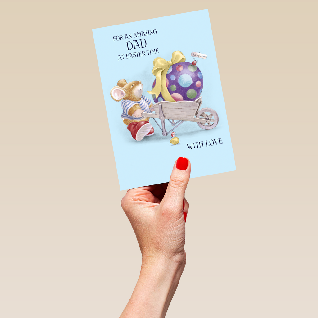 Show them you care with a personalised Country Companions Mouse & Wheelbarrow Easter Card for Dad from Hallmark.