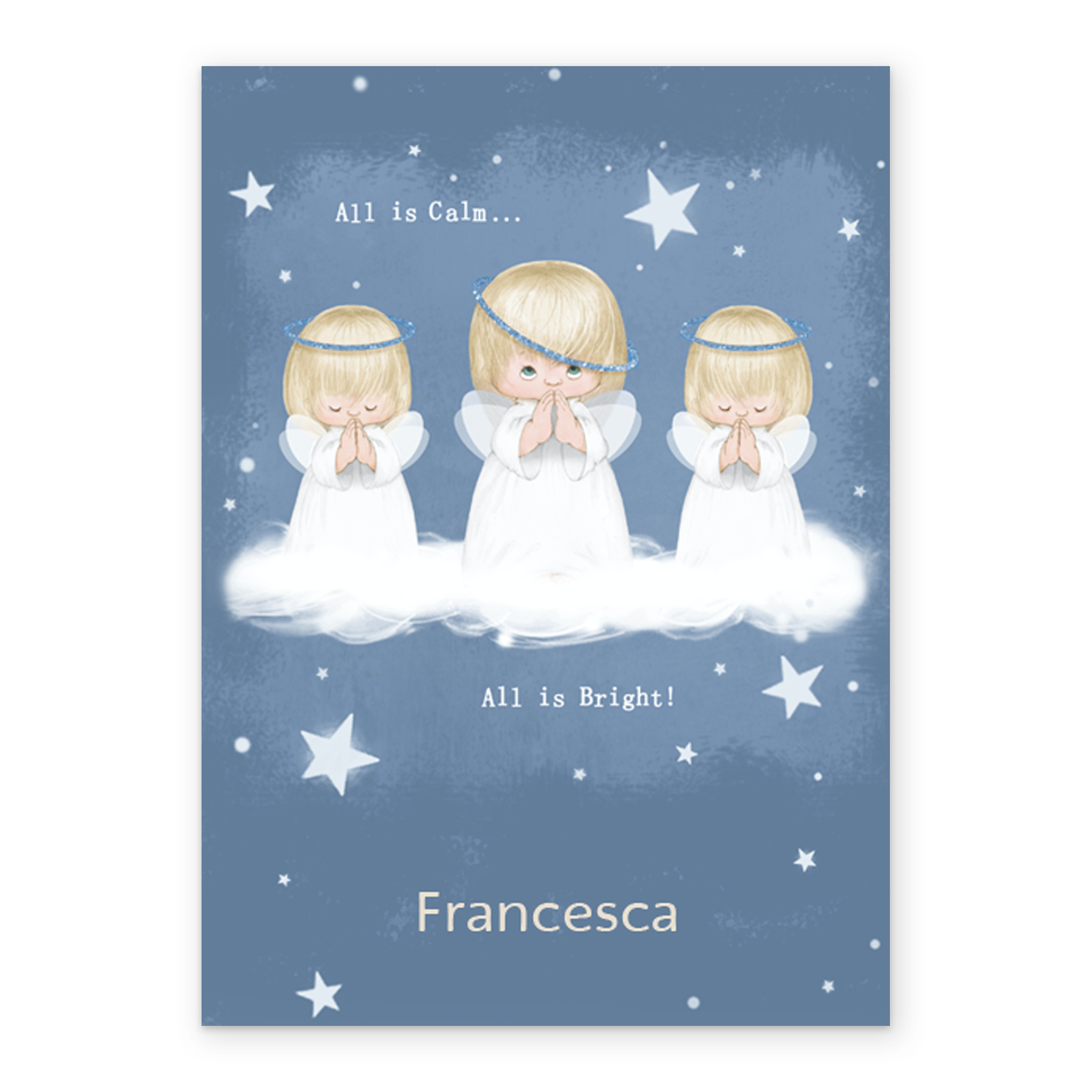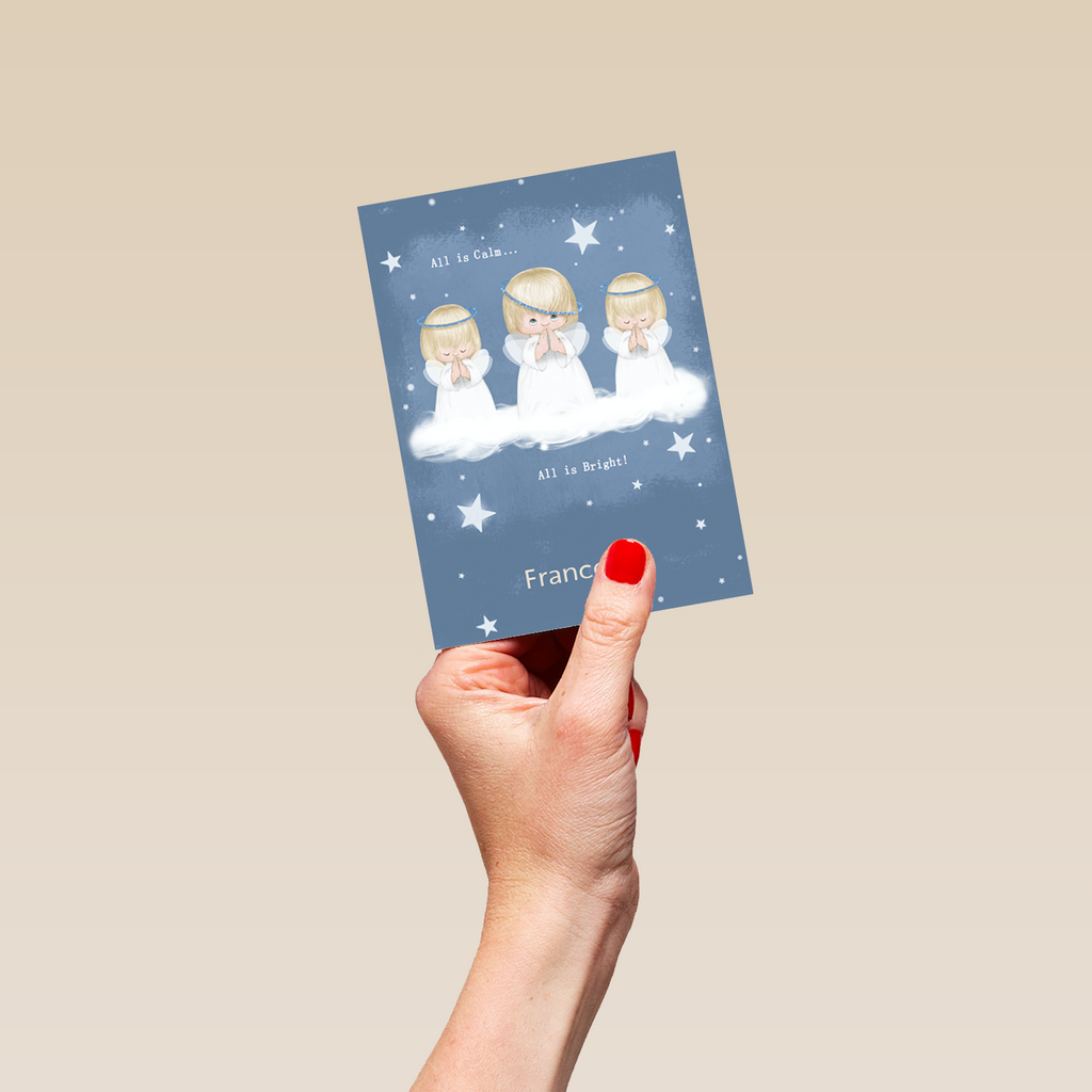 Personalised Cute Angels Starry Night Christmas Card