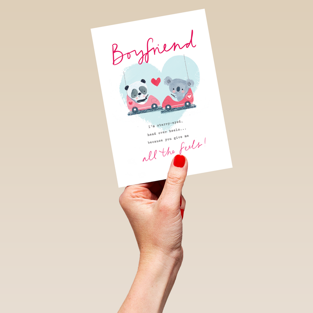 Show them you care this Valentine's Day with a personalised Cute Animals & Love Heart Boyfriend card.