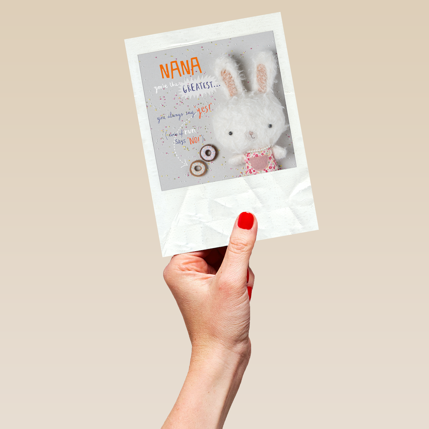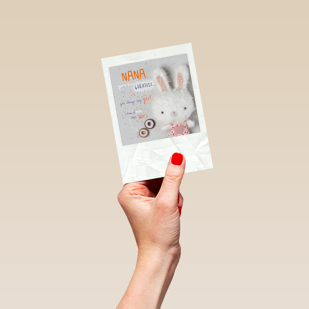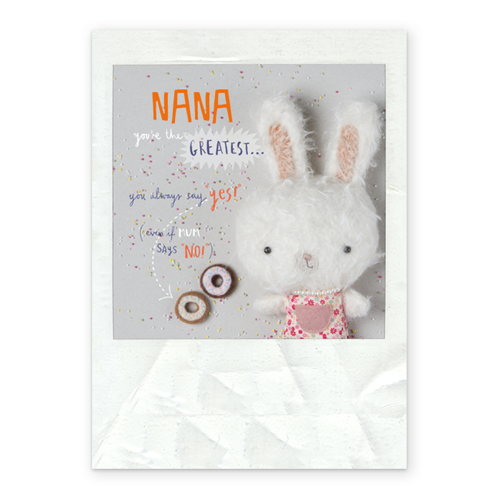 Show them you care with a personalised cute birthday nana editable fuzzy bunny rabbit card from Hallmark. Our greetings cards are printed on premium quality, FSC®-certified card & delivered nationwide. This card is available as standard 12cm by 16.7cm and large 15.5cm by 21.6cm.