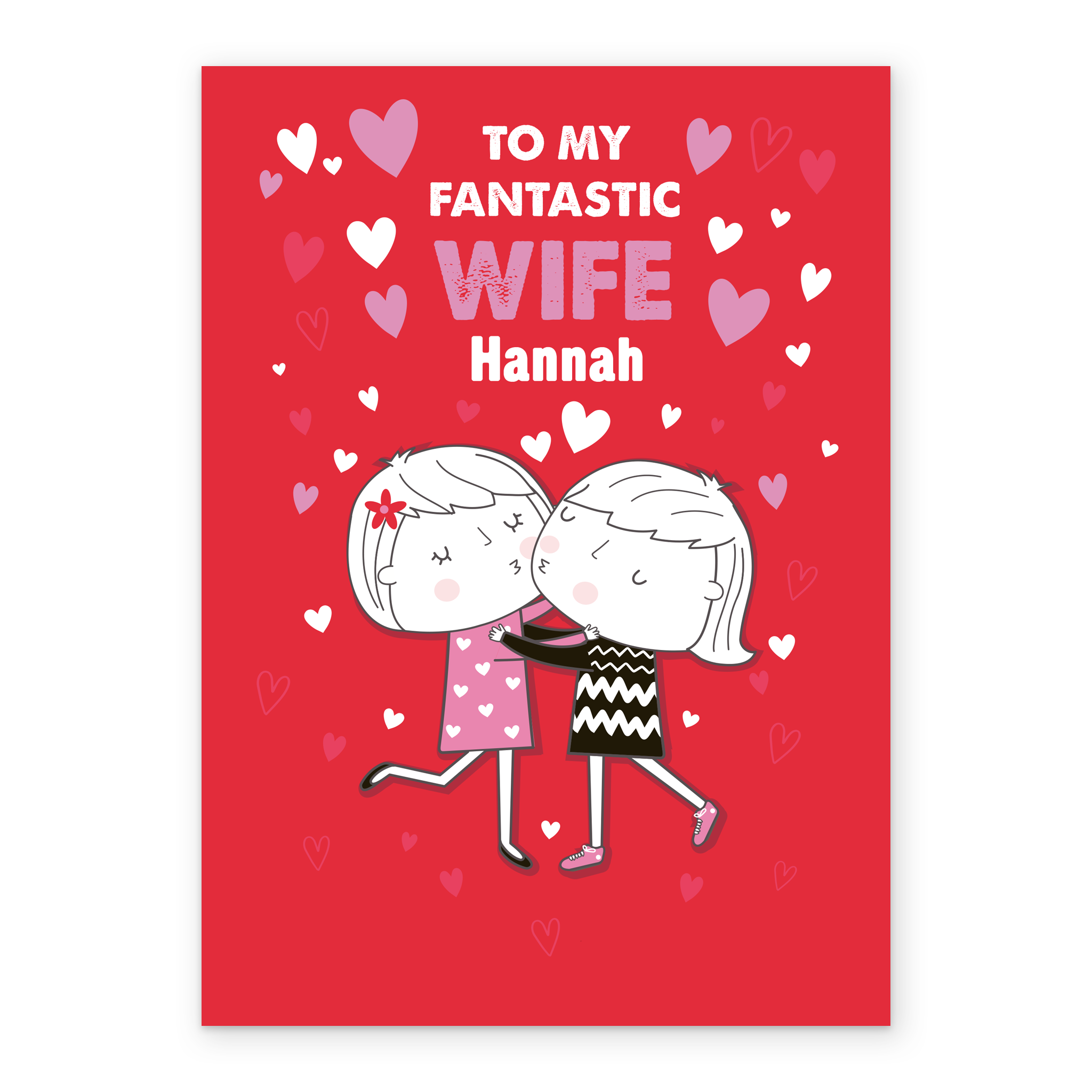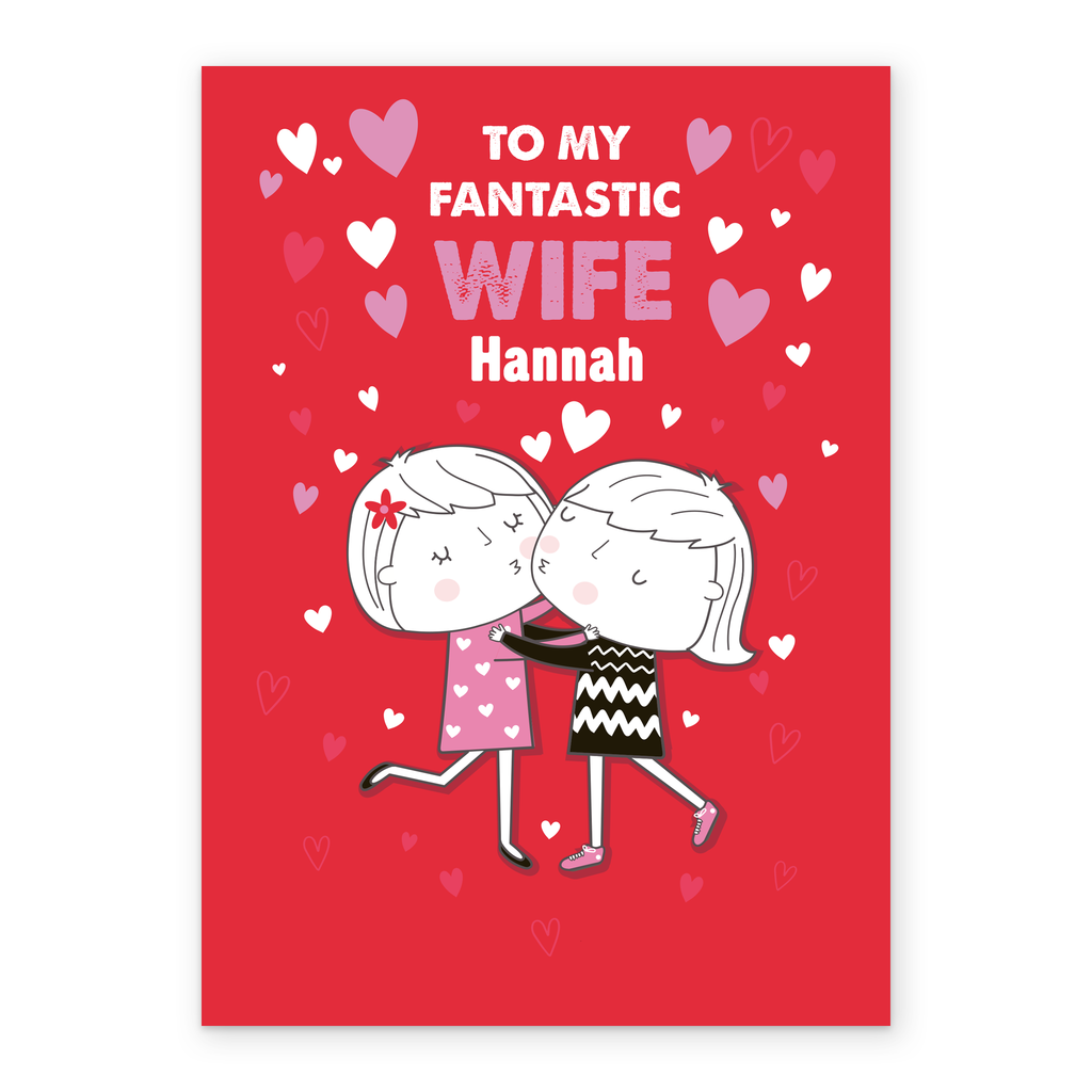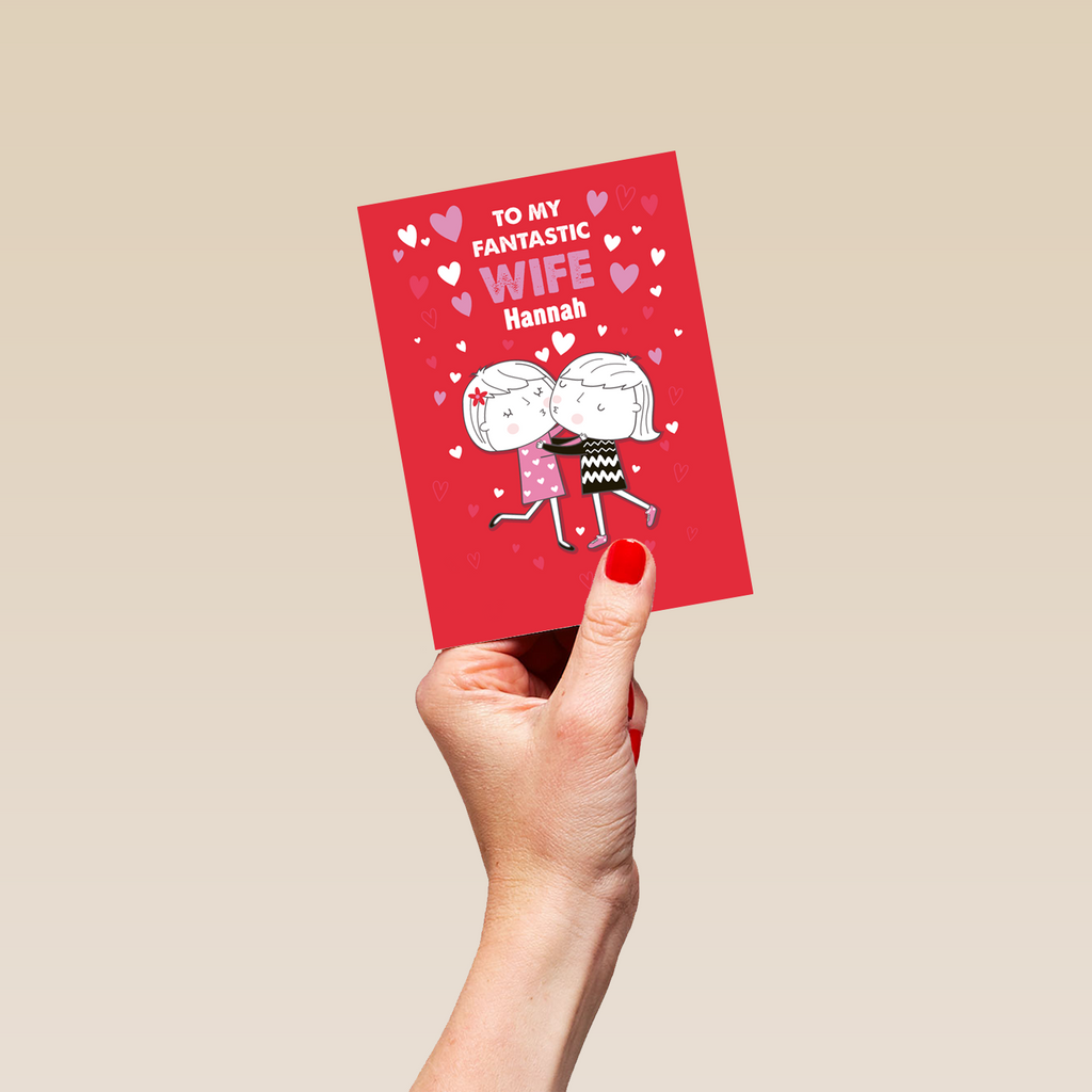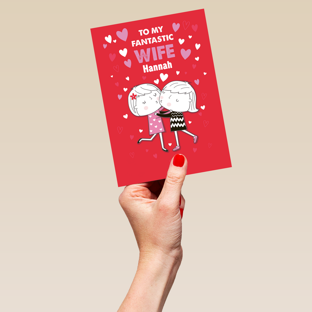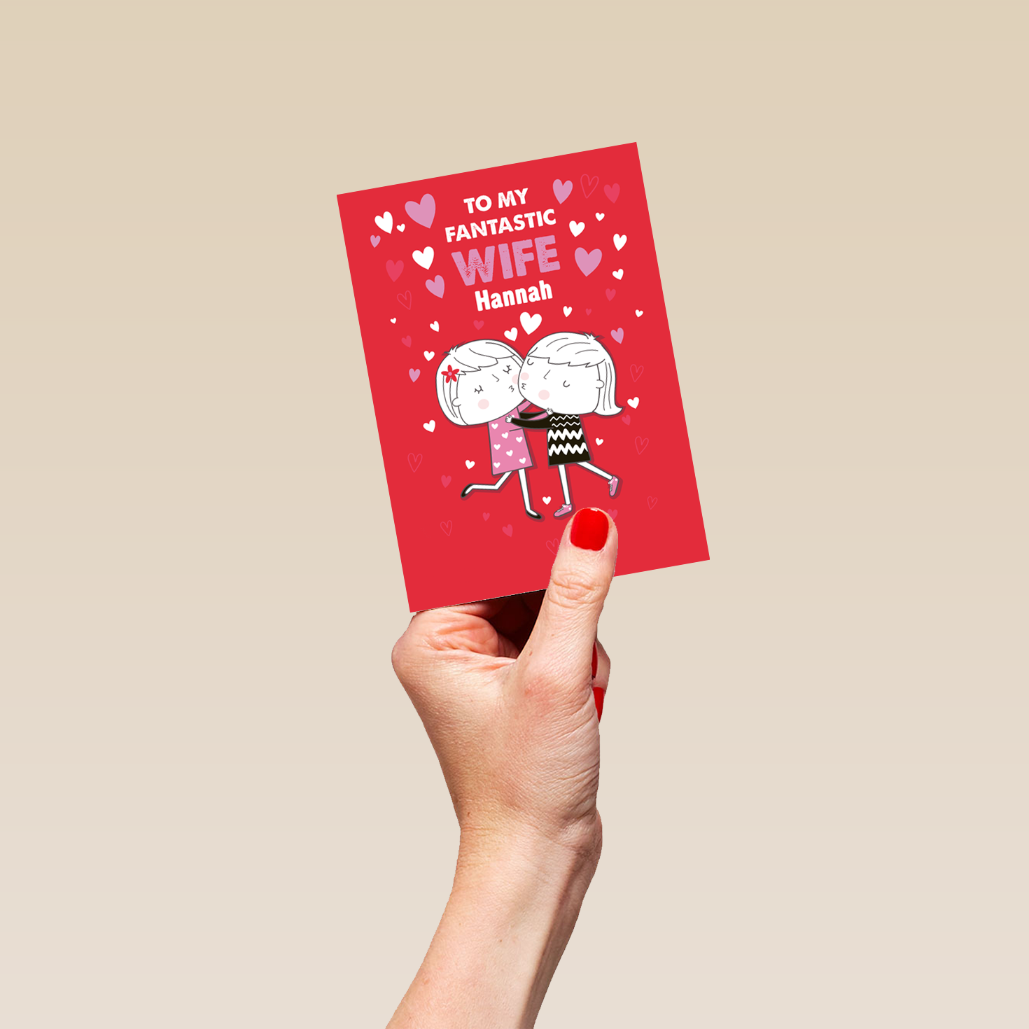 Show them you care this Valentine's Day with a personalised Wife Cute Cartoon card.