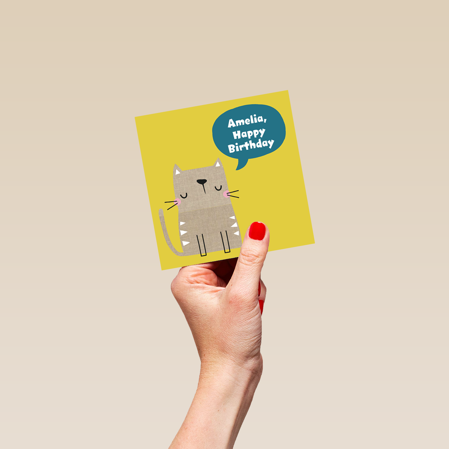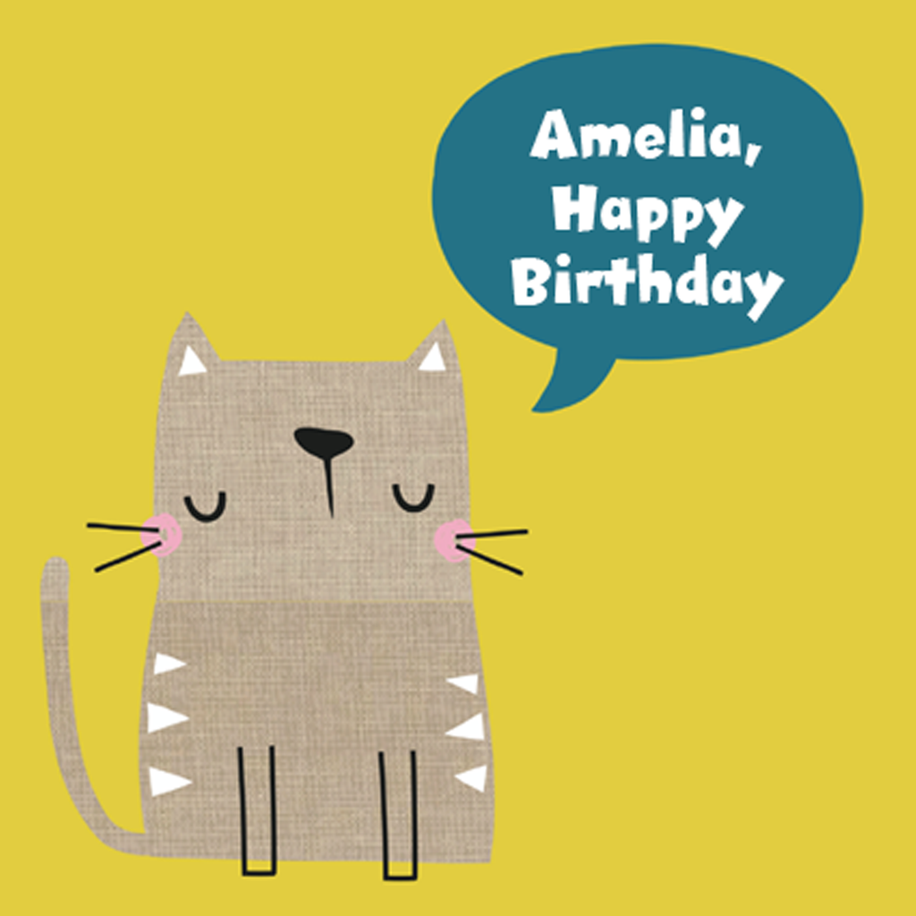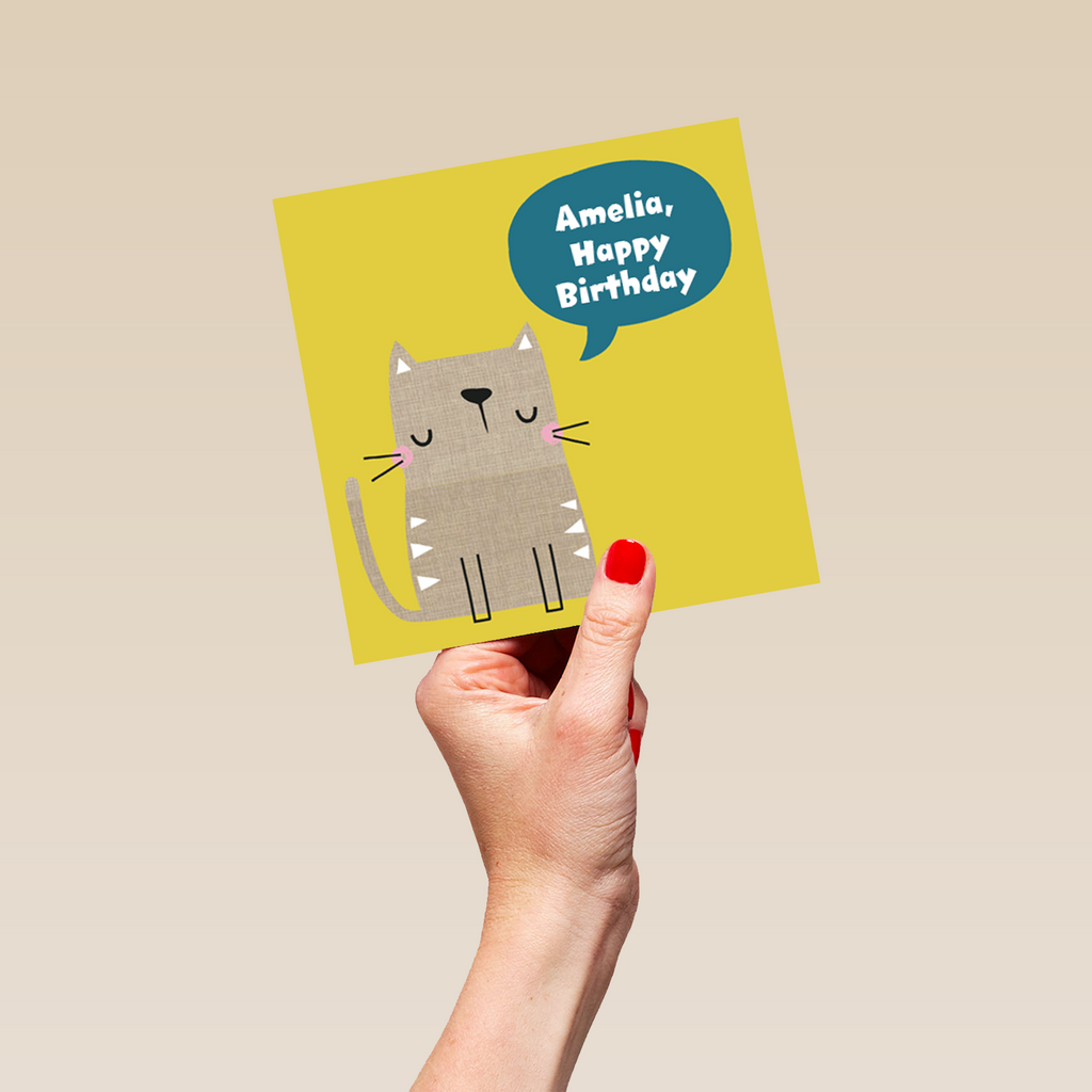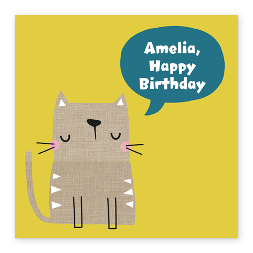 Personalised Cute Cat Happy Birthday Kids Card