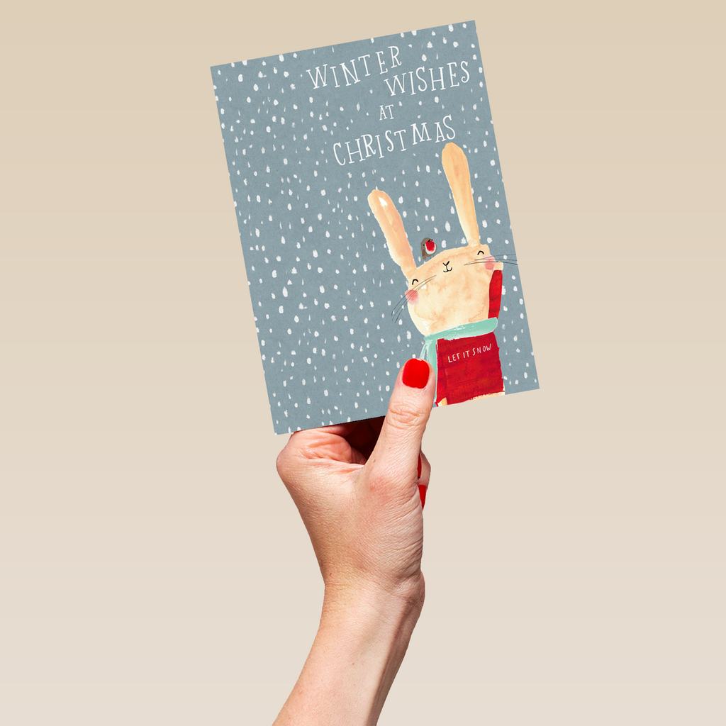Show them you care with a personalised cute Christmas kids bunny & robin snow card from Hallmark. Our greetings cards are printed on premium quality, FSC®-certified card & delivered nationwide. This card is available as standard 12cm by 16.7cm and large 15.5cm by 21.6cm.