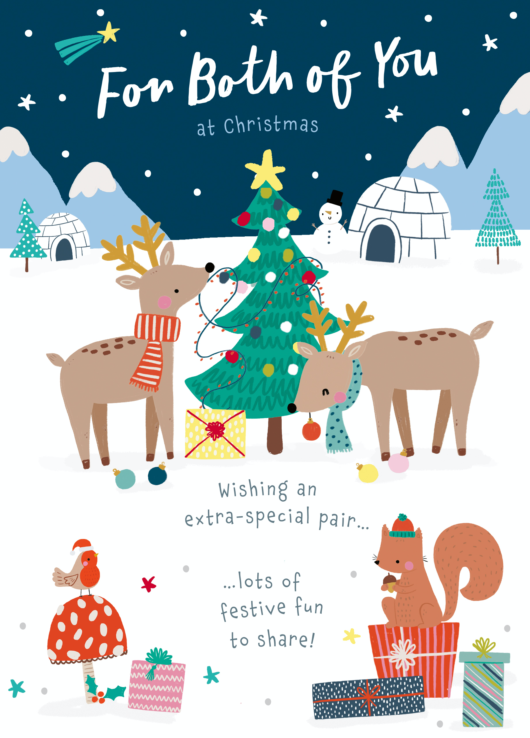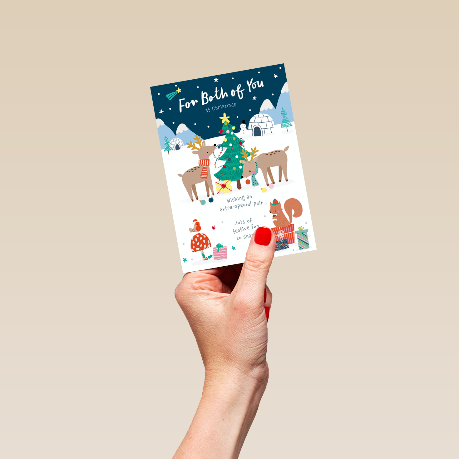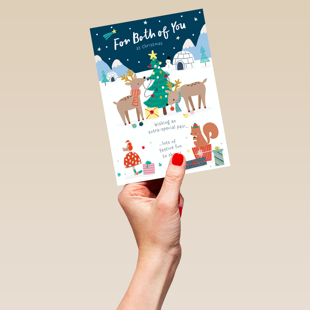 Show them you care with a personalised cute Christmas woodland animals & tree to both card from Hallmark. Our greetings cards are printed on premium quality, FSC®-certified card & delivered nationwide. This card is available as standard 12cm by 16.7cm and large 15.5cm by 21.6cm.