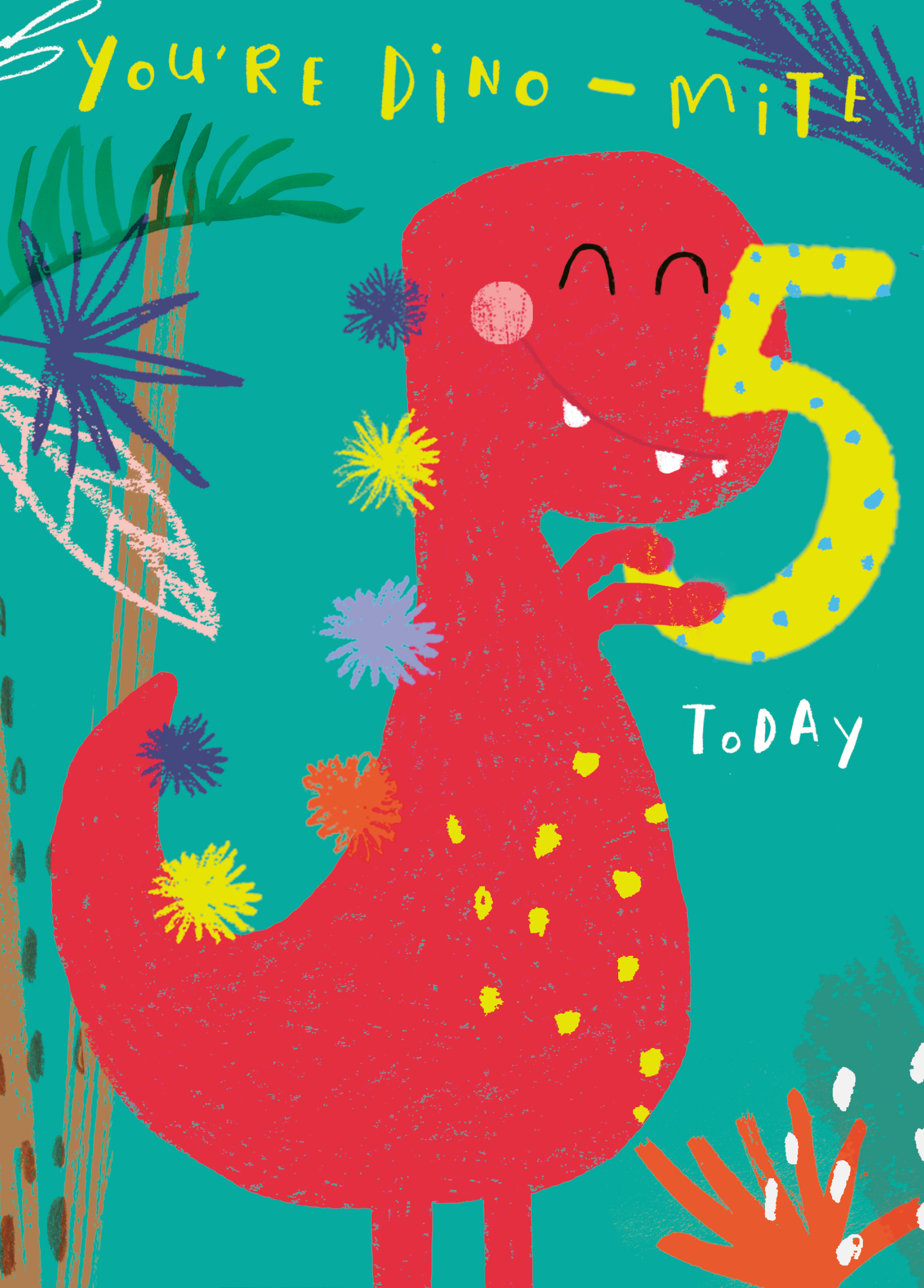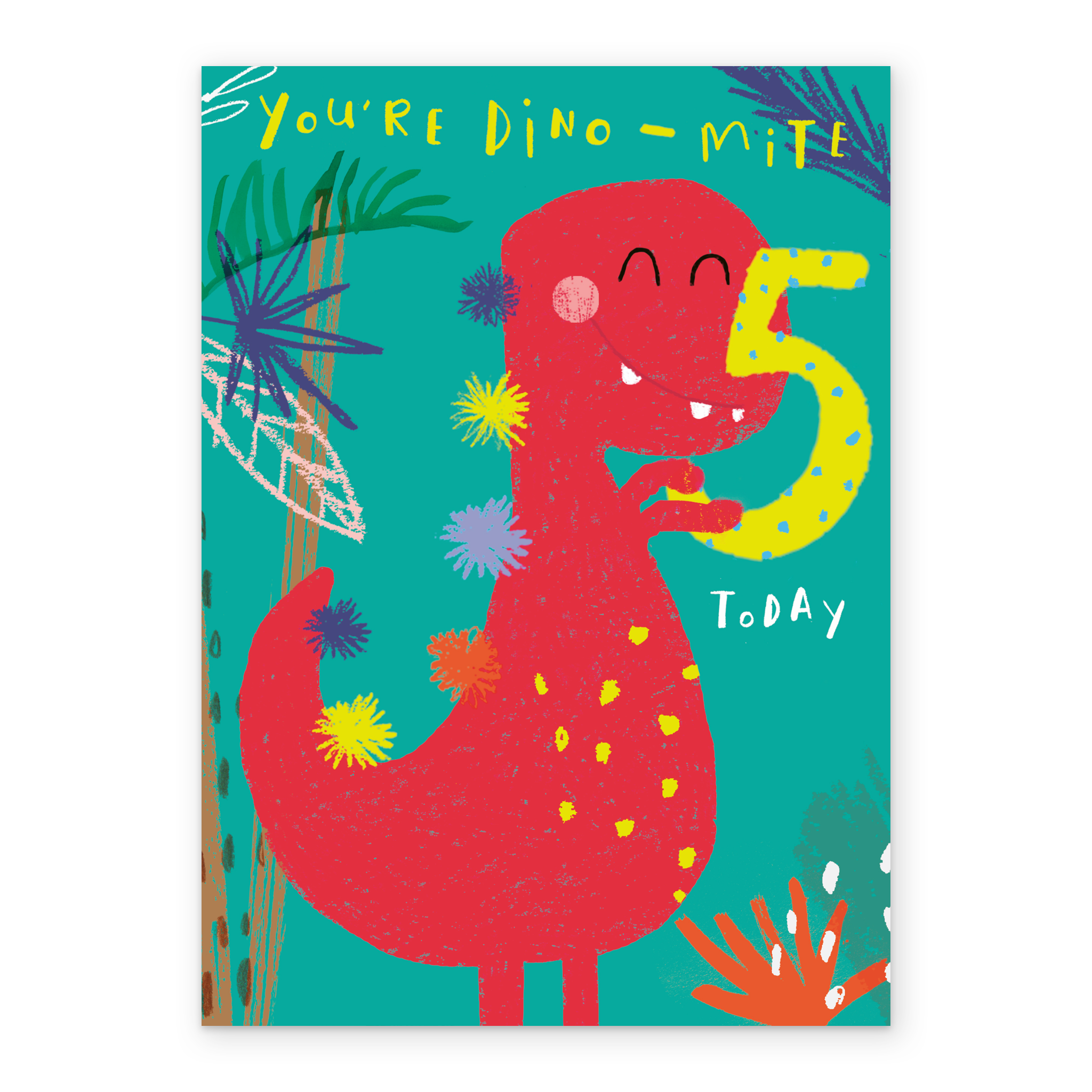 Personalised Cute Colourful Smiley Dinosaur 5th Birthday Card