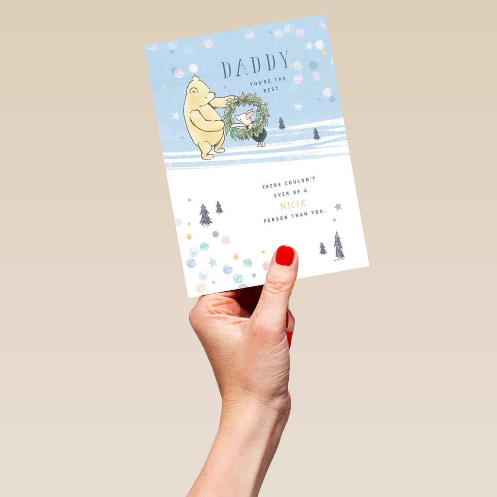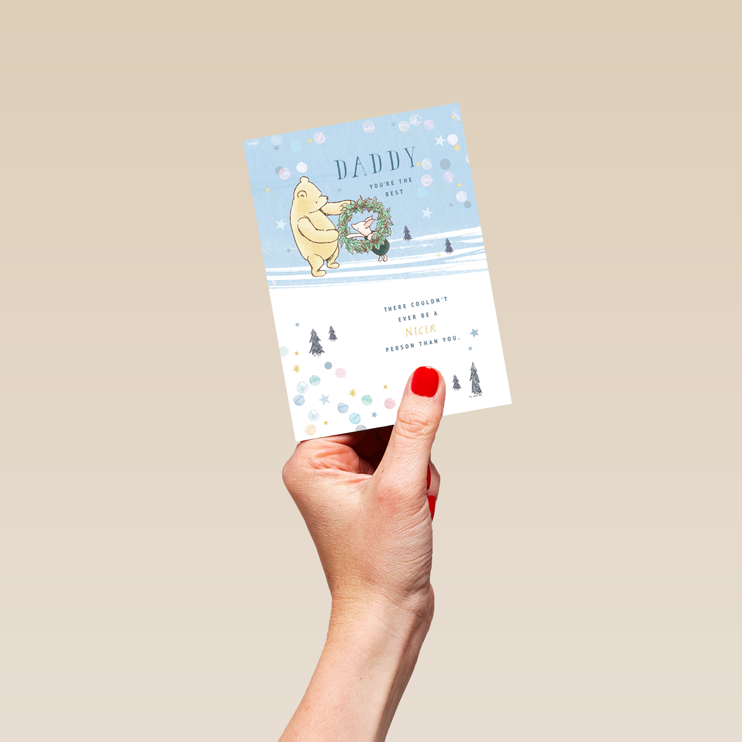 Show them you care with a personalised & editable Winnie The Pooh Christmas card for daddy from Hallmark. Our Christmas cards are printed on premium quality, FSC®-certified card & delivered nationwide. This card is available as standard 12cm by 16.7cm and large 15.5cm by 21.6cm.
