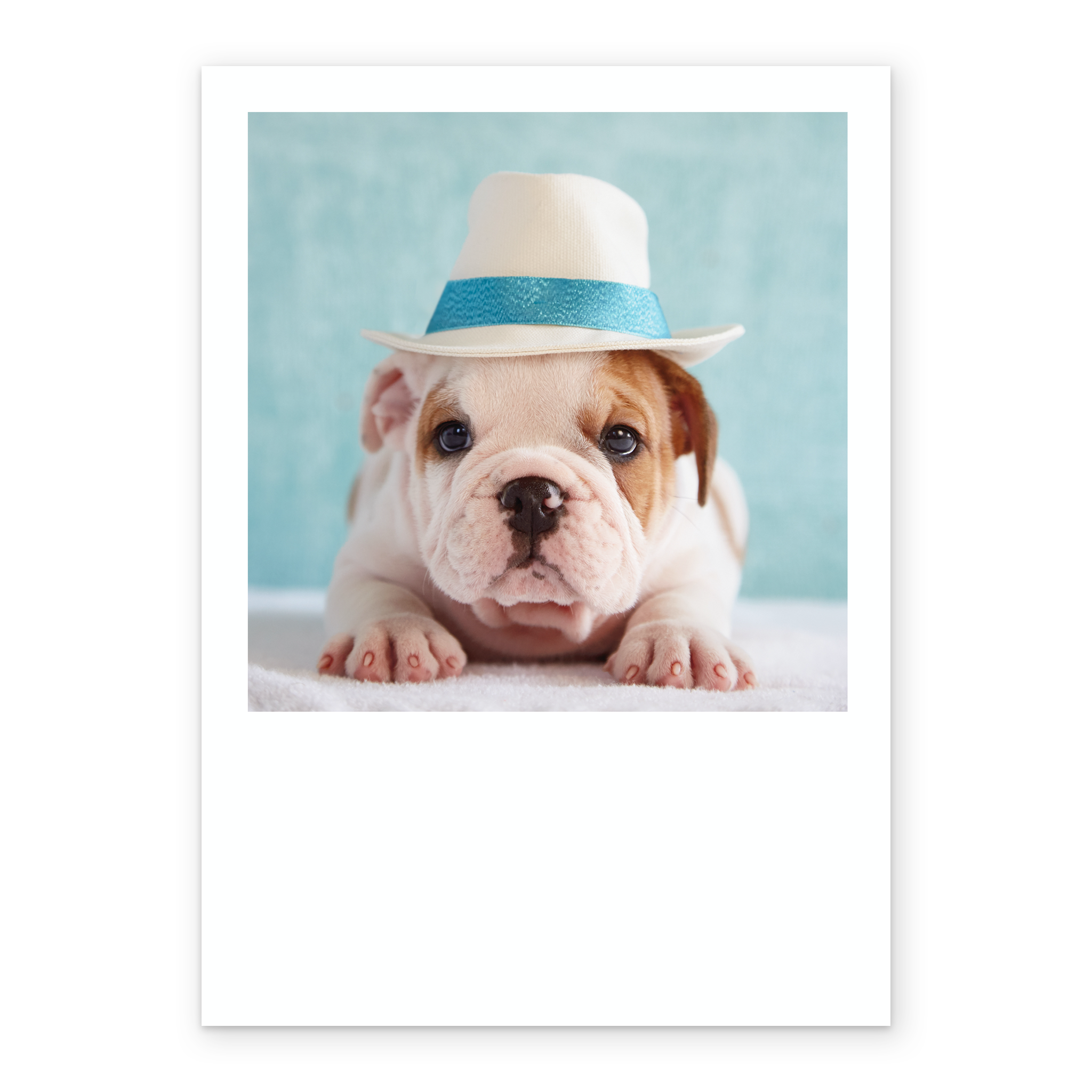 Show them you care with a personalised cute dog in hat card from Hallmark. Our blank cards are printed on premium quality, FSC®-certified card & delivered nationwide. This card is available as standard 12cm by 16.7cm and large 15.5cm by 21.6cm.