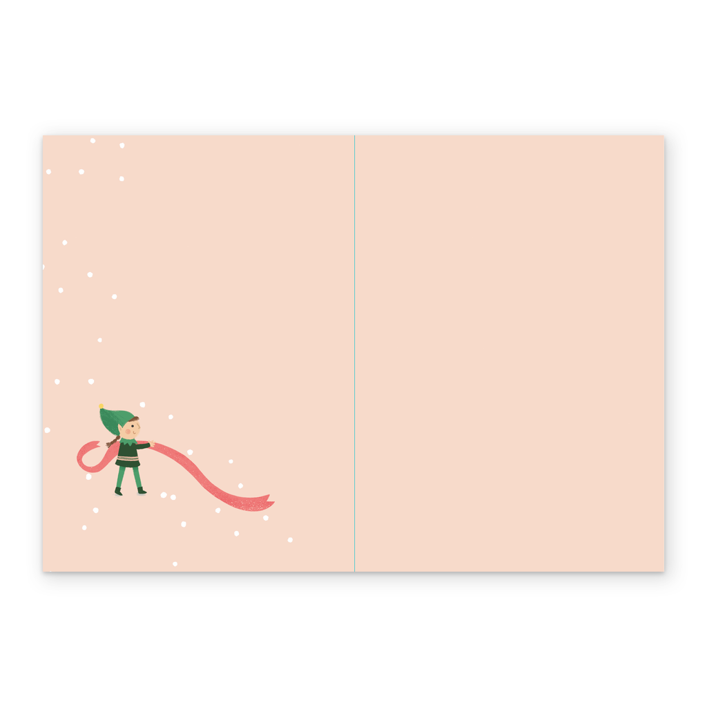 Printed on premium-quality board, this card features a cute illustration of Santa's elves decorating a present, and comes complete with a co-ordinating white envelope.