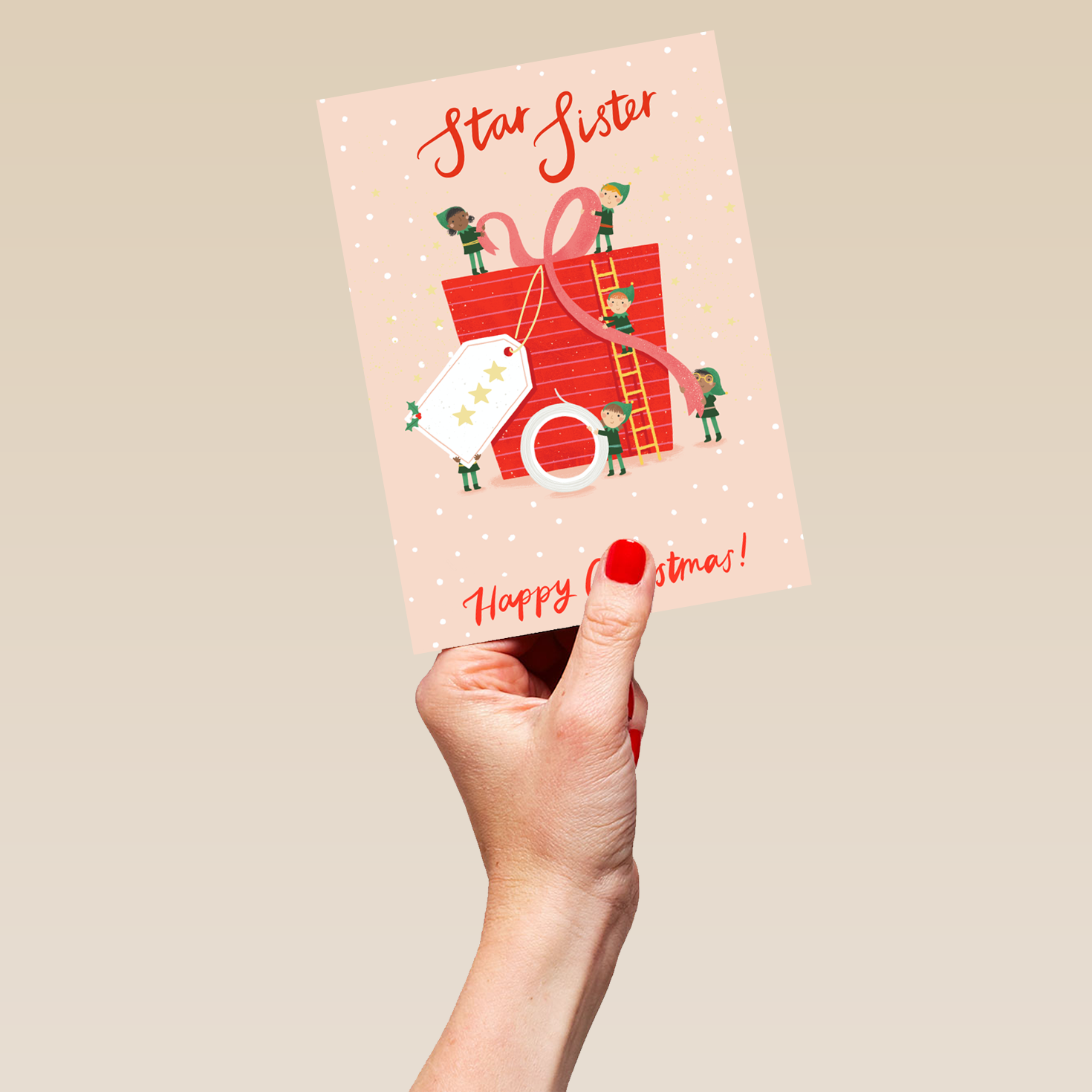 Celebrate Christmas with your super-star sister, and send her some words of love with this sweet and personalisable Christmas card.