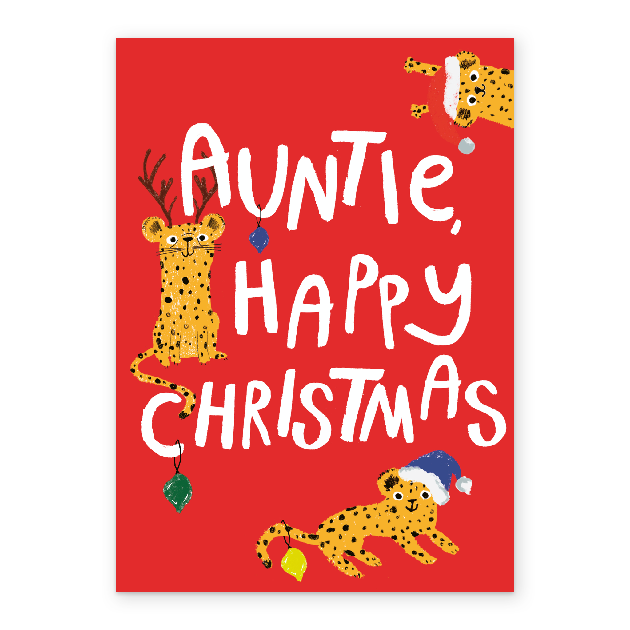 Personalised Cute Festive Cheetahs Christmas Card for Auntie
