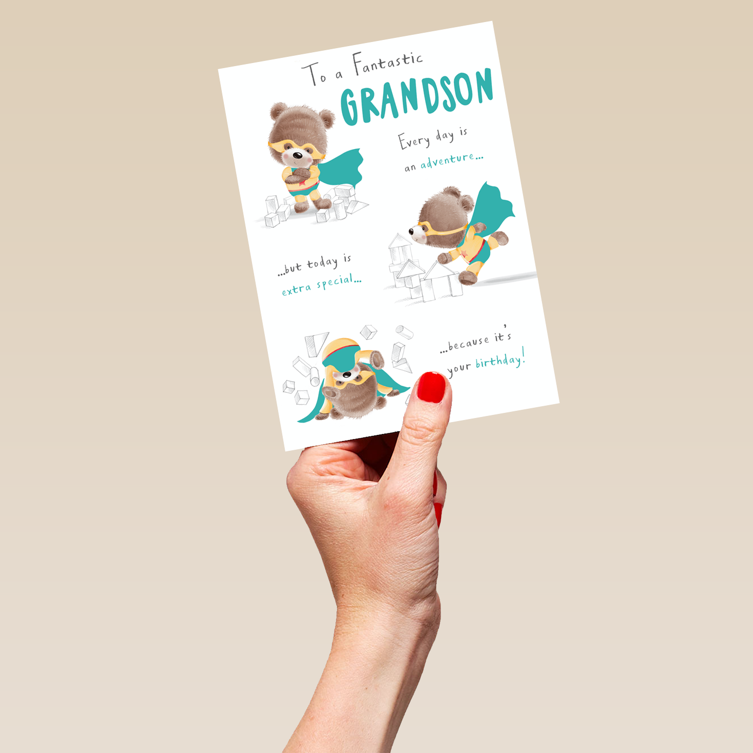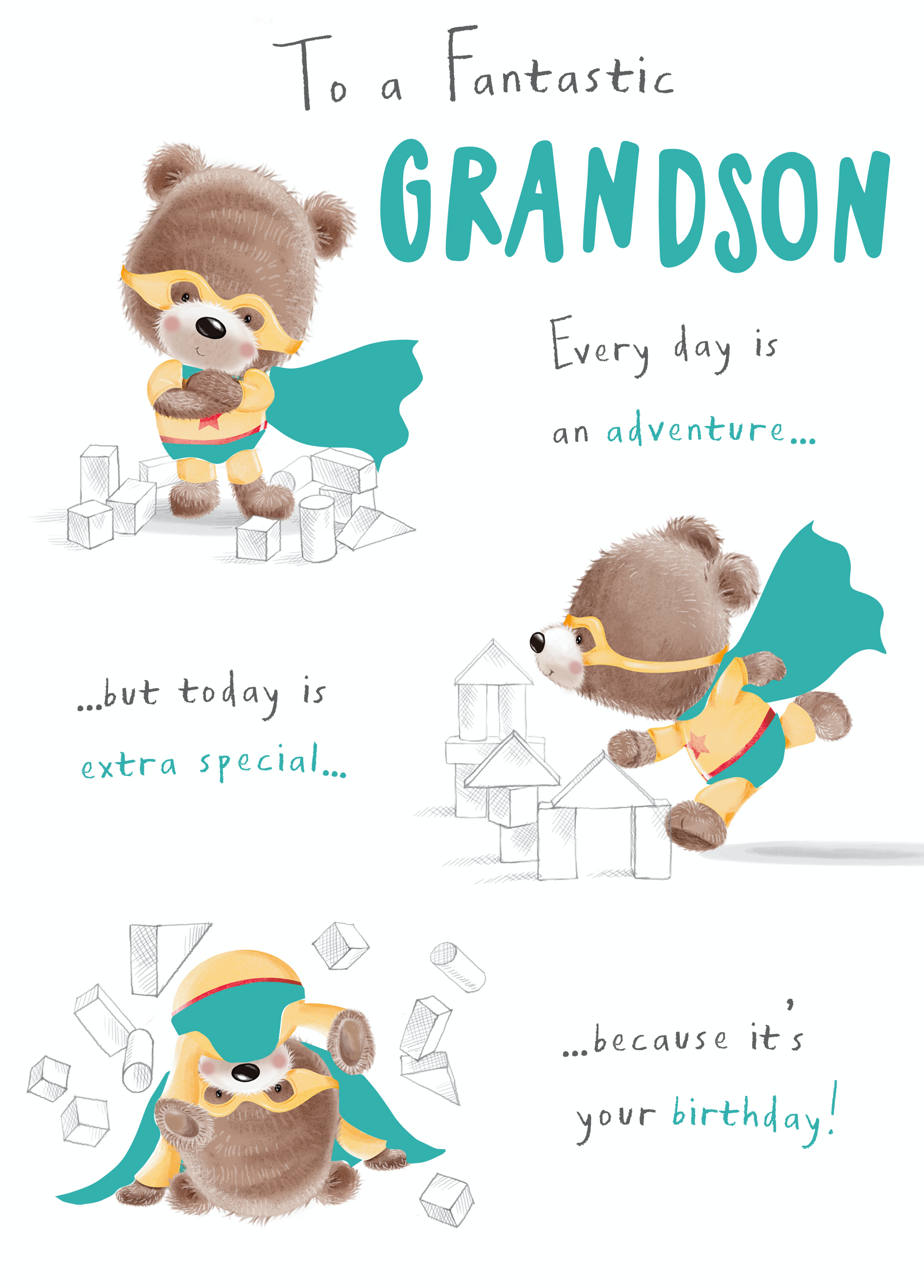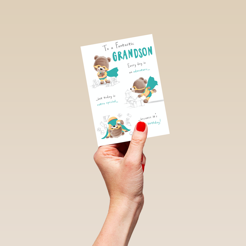 Show them you care with a personalised cute grandson bears birthday card from Hallmark. Our greetings cards are printed on premium quality, FSC®-certified card & delivered nationwide. This card is available as standard 12cm by 16.7cm and large 15.5cm by 21.6cm.