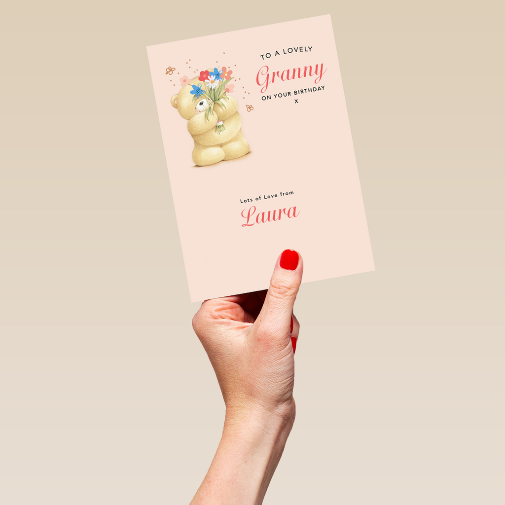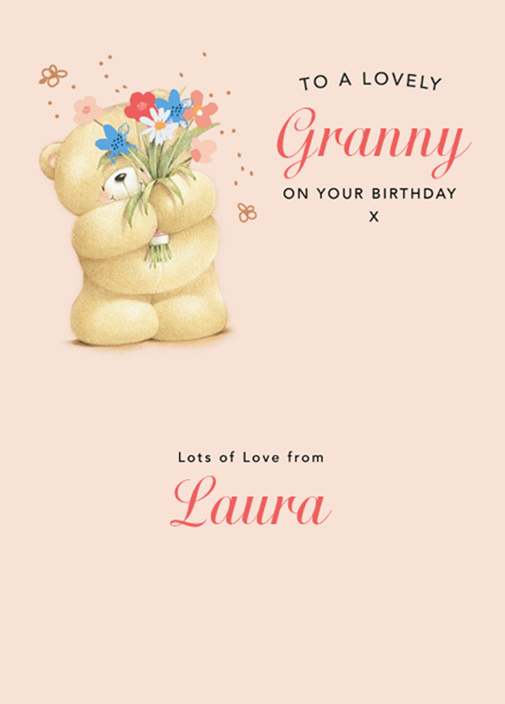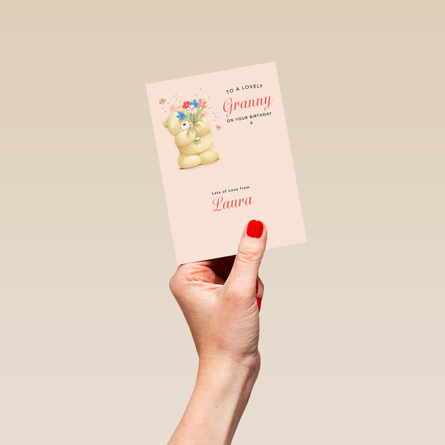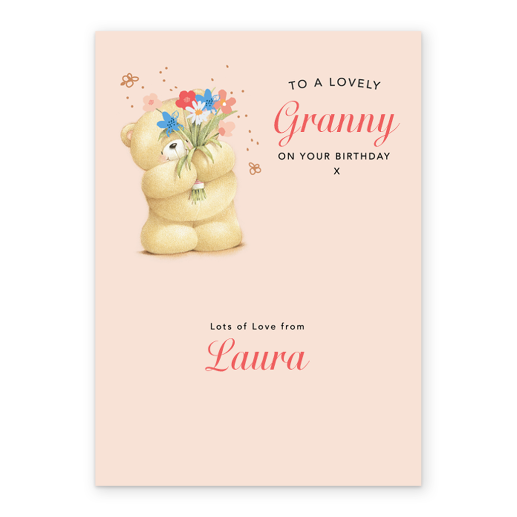 Show them you care with a personalised cute Forever Friends bear birthday card for granny from... View more details