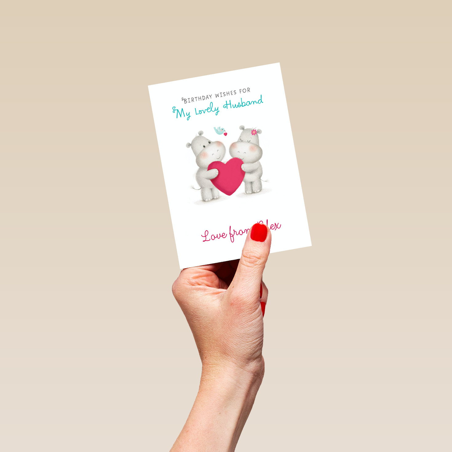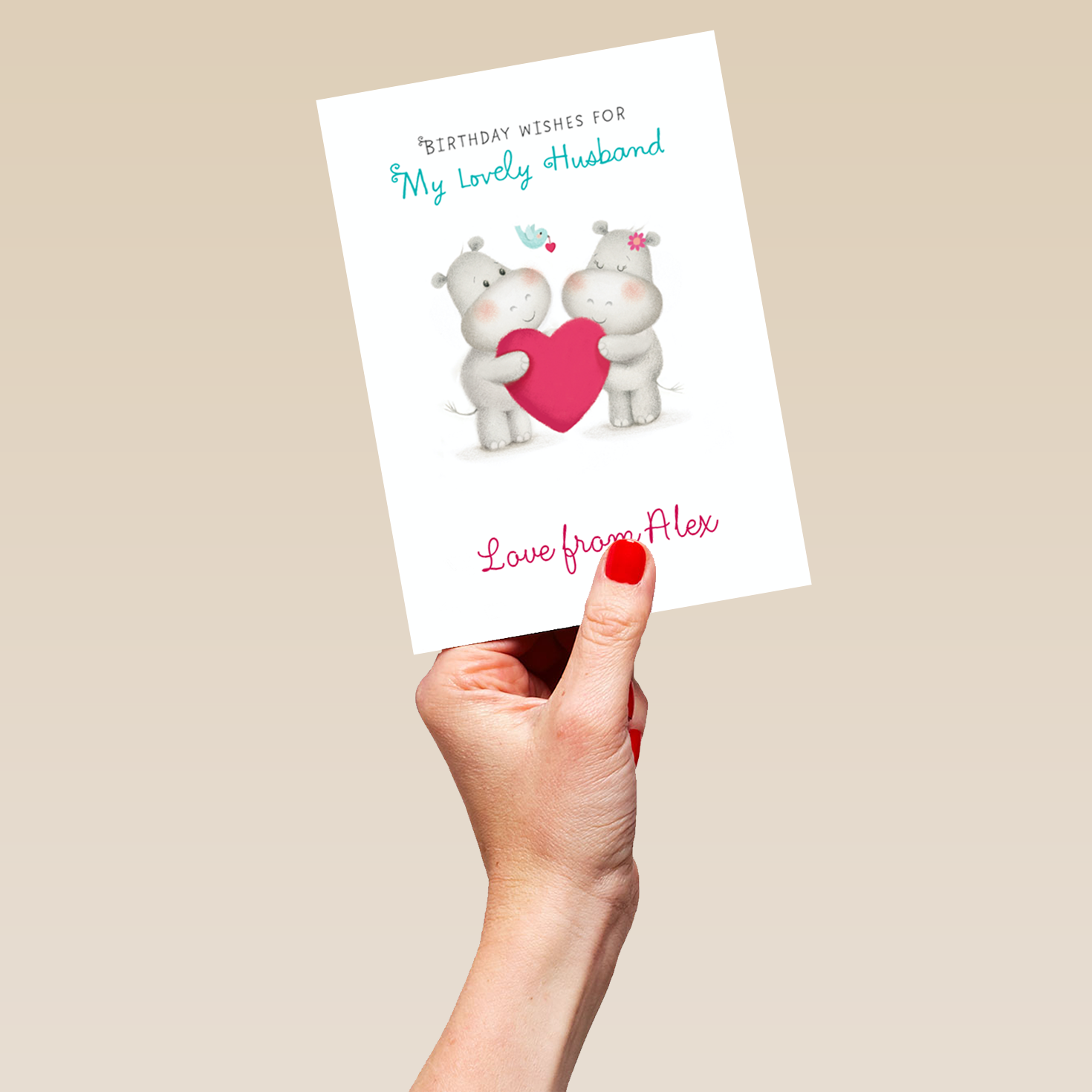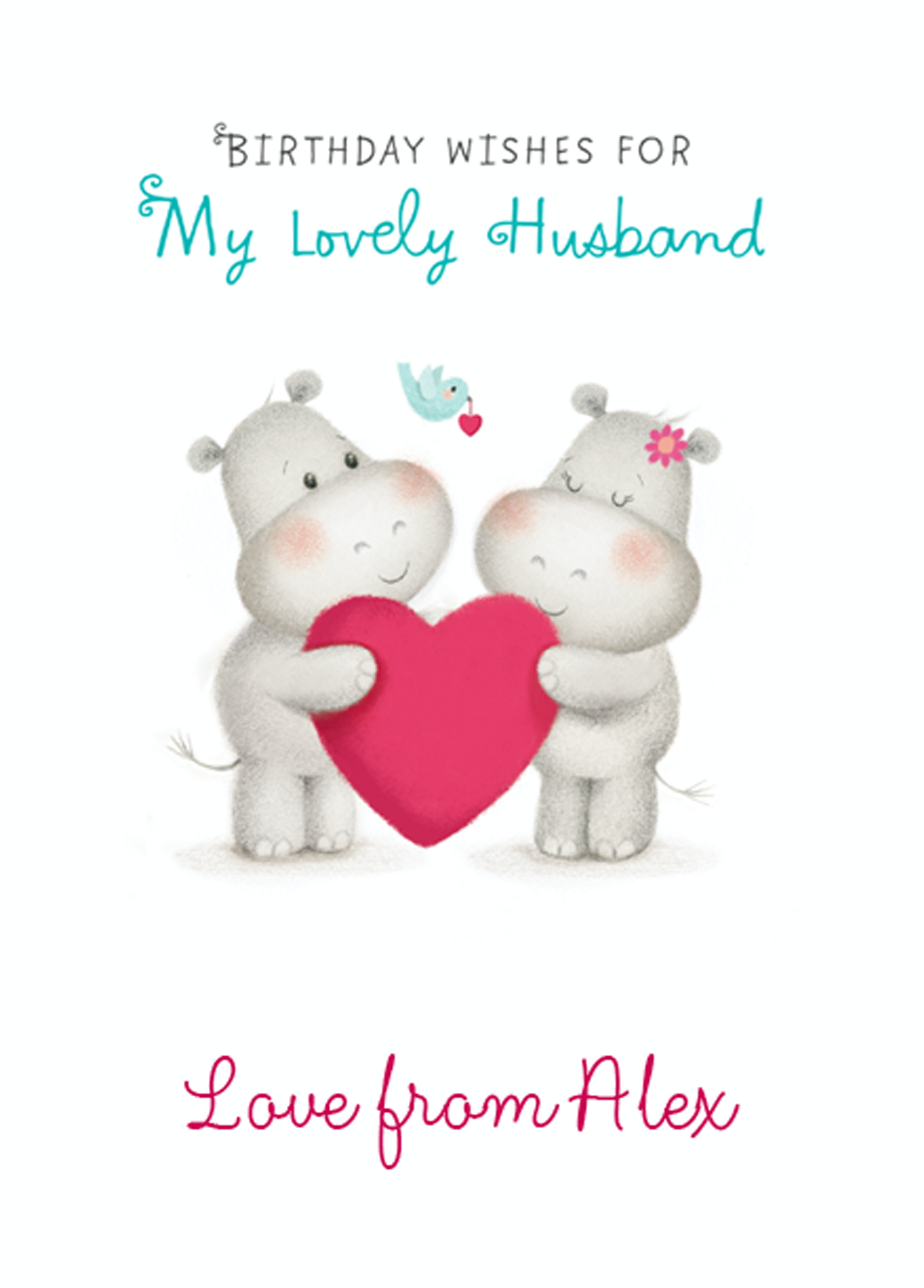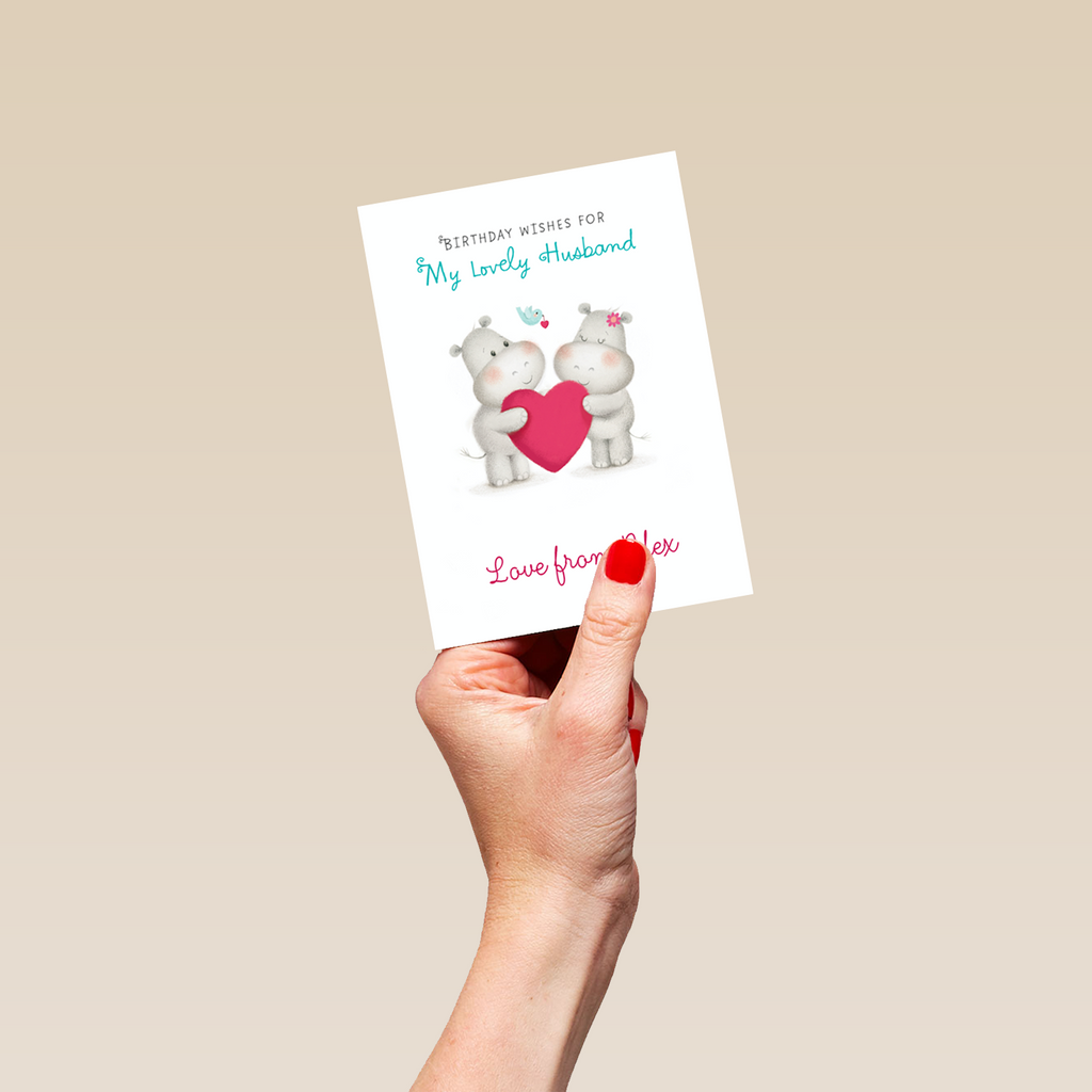 Show them you care with a personalised cute hippos husband card from Hallmark. Our birthday cards are printed on premium quality, FSC®-certified card & delivered nationwide. This card is available as standard 12cm by 16.7cm and large 15.5cm by 21.6cm.