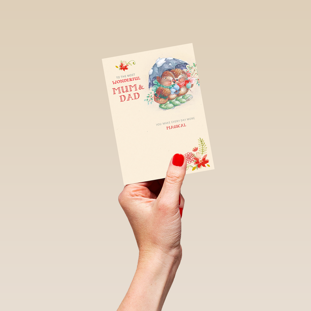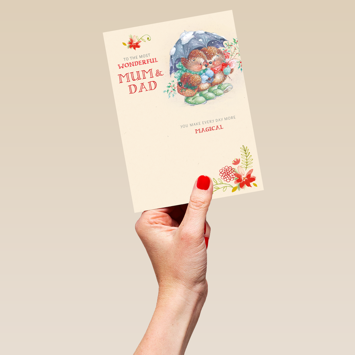 Show them you care with a personalised cute magical mum & dad card from Hallmark. Our Christmas cards are printed on premium quality, FSC®-certified card & delivered nationwide. This card is available as standard 12cm by 16.7cm and large 15.5cm by 21.6cm.