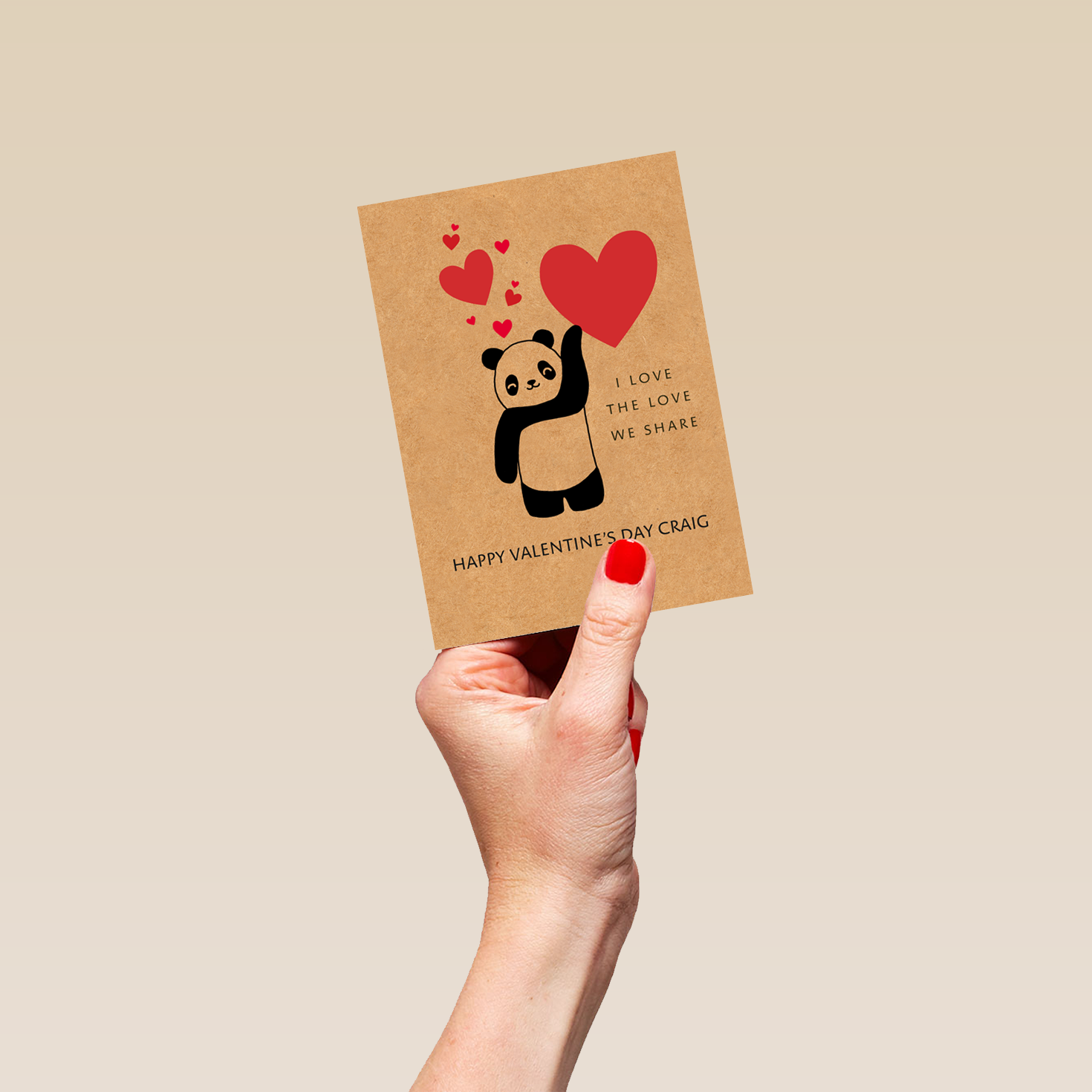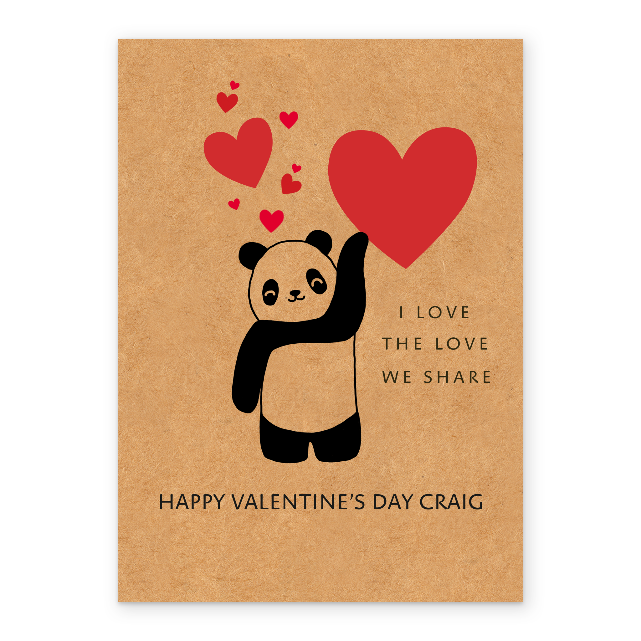 Personalised Cute Panda Love Heart Valentine's Day Card