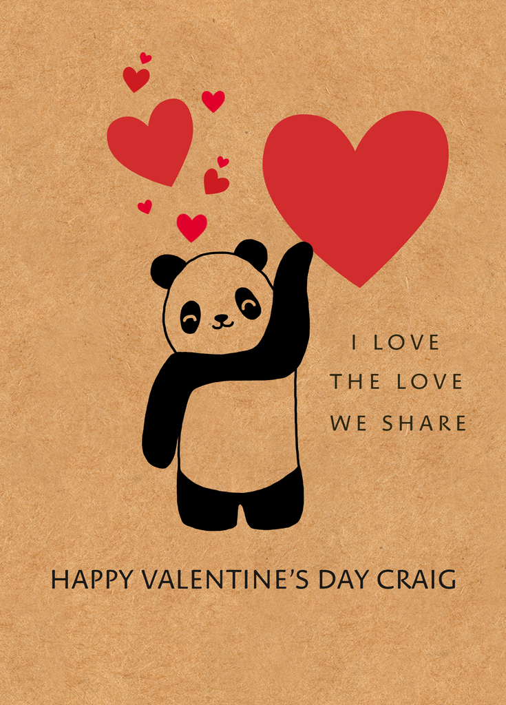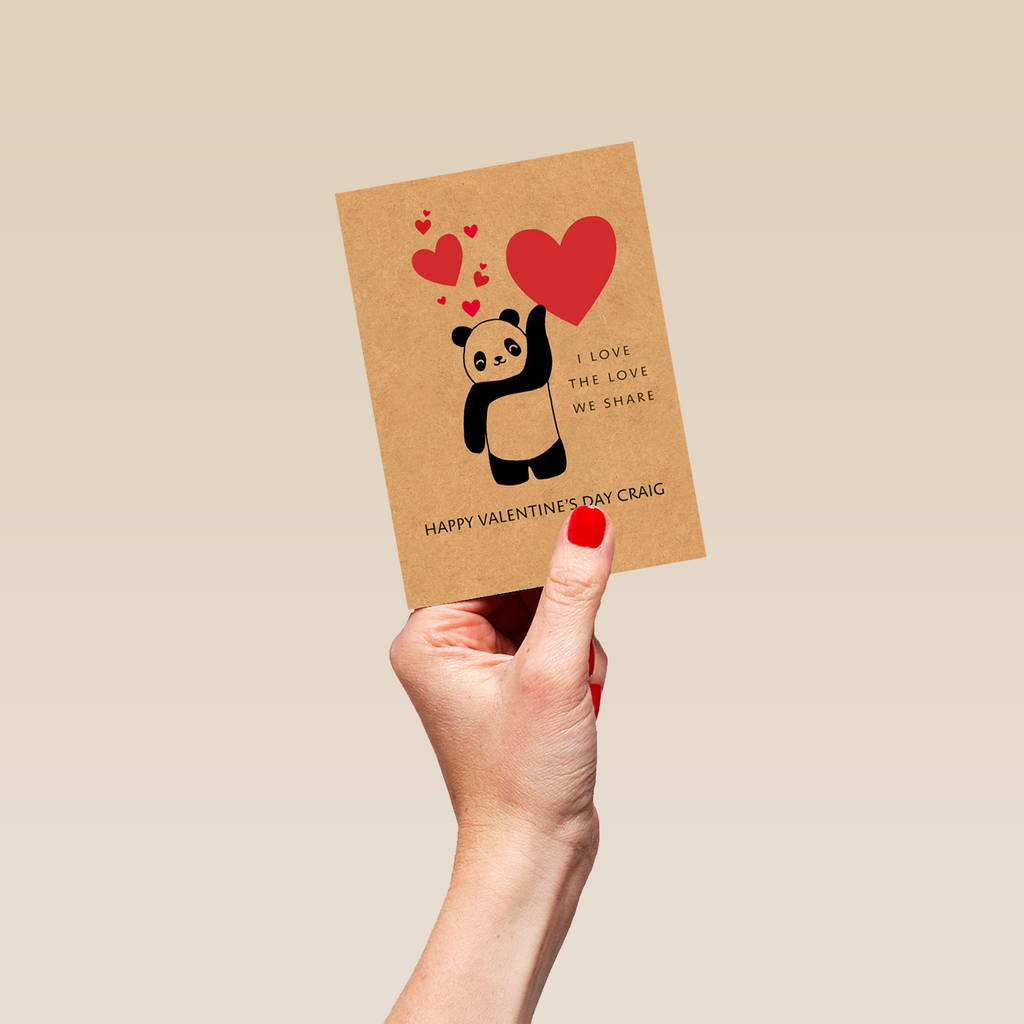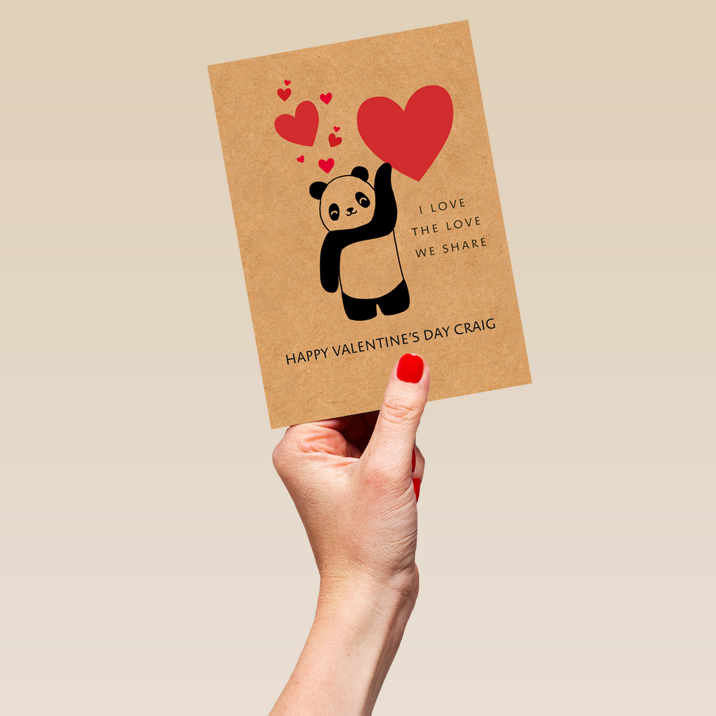 Show them you care this Valentine's Day with a personalised Cute Panda Love Heart card.