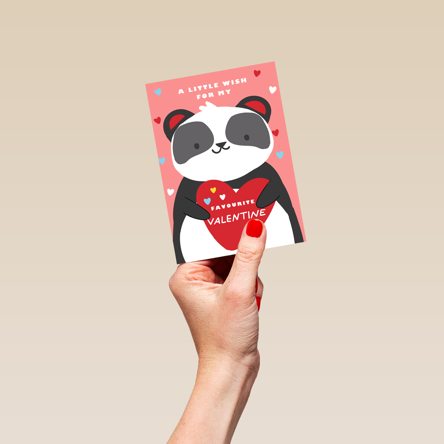 Personalised Cute Panda With Love Hearts Kids Valentine's Day Card