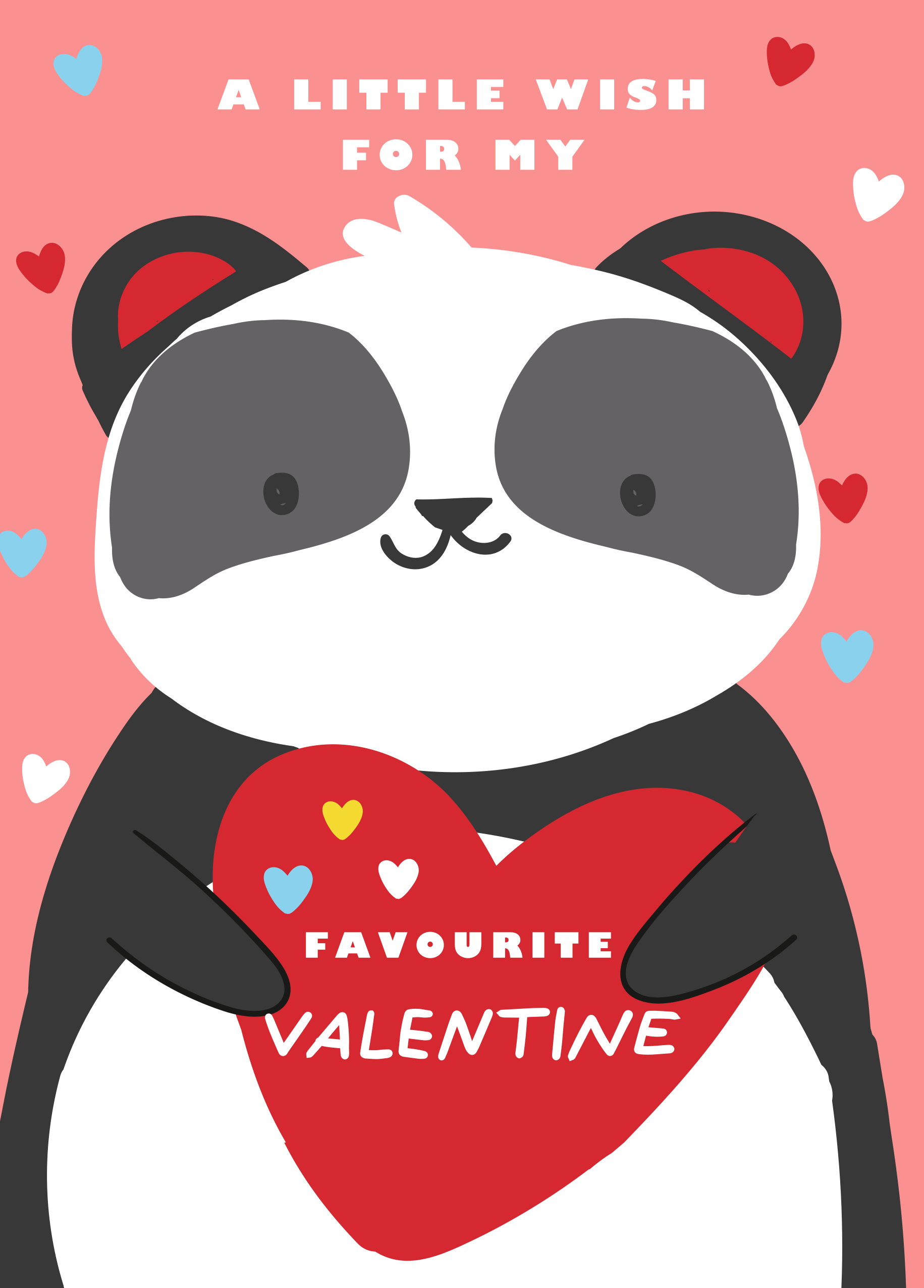 Show them you care this Valentine's Day with a personalised Cute Panda With Love Hearts Kids card.