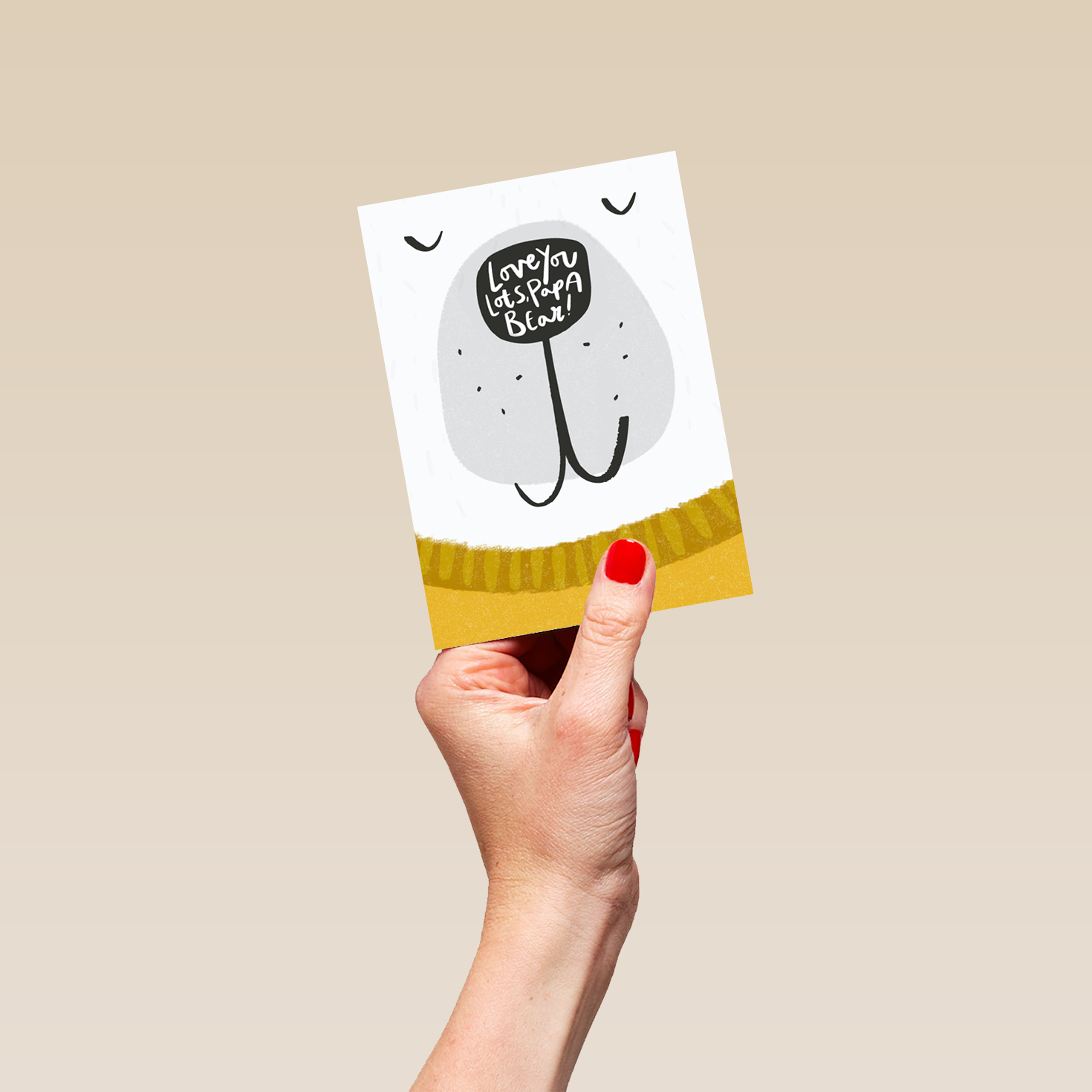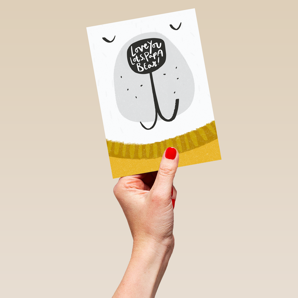 Show them you care with a personalised cute papa bear Father's Day card from Hallmark. Our Father's Day cards are printed on premium quality, FSC®-certified card & delivered nationwide. This card is available as standard 12cm by 16.7cm and large 15.5cm by 21.6cm.