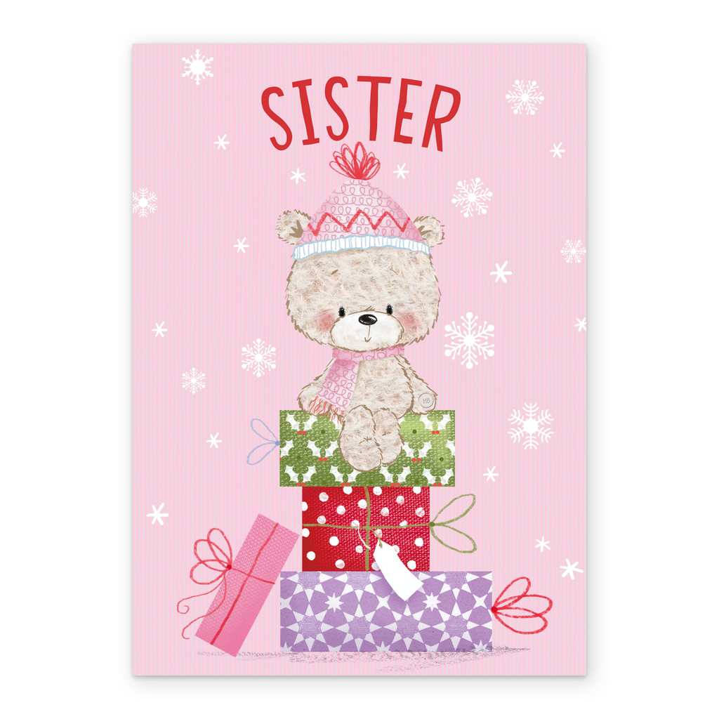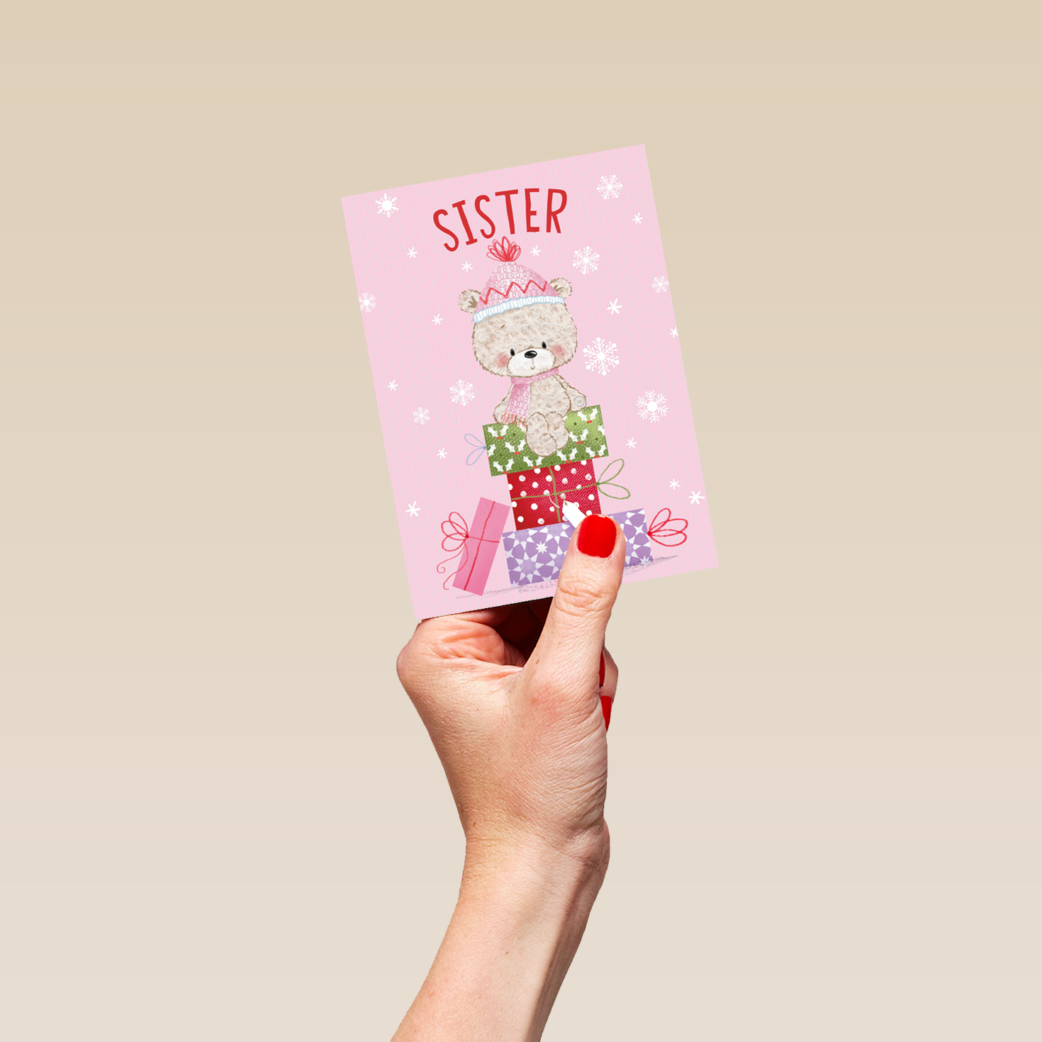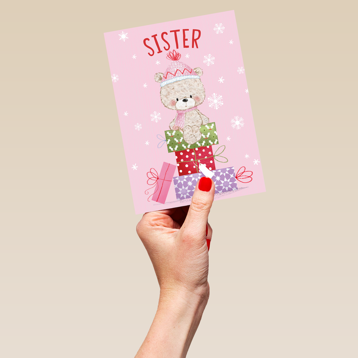 Show them you care with a personalised cute presents sister card from Hallmark. Our Christmas cards are printed on premium quality, FSC®-certified card & delivered nationwide. This card is available as standard 12cm by 16.7cm and large 15.5cm by 21.6cm.